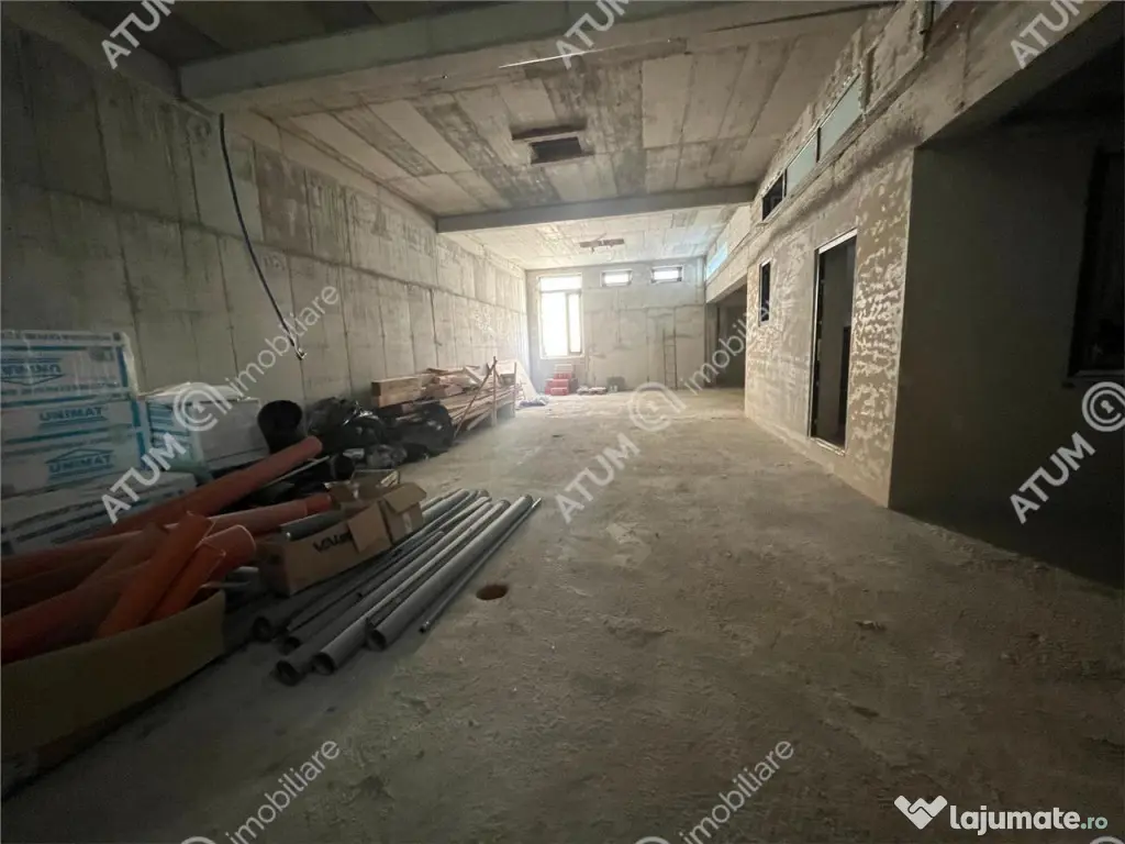 Atum Imobiliare va propune spre inchiriere un spatiu comercial compus din Demisol Parter, situat situat in zona Blv Victoriei din Sibiu, pretabil pentru clinica medicala sau diferite activitati comerciale. Parterul are suprafata utila de 94,35 mp compus din spatiu de servicii 82.40 mp, grup sanitar 2.85 mp si casa scarii 7.20 mp. Subsolul are 174 mp si este compus din casa scarii 10,90 mp, spatiul servicii 71.25 mp si spatiu depozitare 94.25 mp. Separat de suprafata utila acesta dispune si de o terasa in suprafata de 46 mp si o curte interioara cu acces auto in care se pot parca minim 3 autoturisme. Spatiul este la stadiul de semifinisat si se poate amenaja in functie de activitatea ce urmeaza sa se desfasoare. Acesta dispune de urmatoarele finisaje: usa de acces din PVC cu 5 camere 3 foi de sticla , tamplarie PVC cu 5 camere si 3 foi de sticla, incalzire in pardoseala cu centrala termica pe gaz, pereti tencuiti cu tencuiala pe baza de var-ciment si sapa de egalizare semiuscata. Pretul de inchiriere este de 2800 de euro/luna plus o luna garantie. ID:2366 Suprafaţă totală: 371 m² An finalizare construcție: 2023 Vitrină: 10 m Stadiu construcţie: Finalizat Înălţime spaţiu: 3 m Număr încăperi: 4 Număr Grupuri Sanitare: 2 Tip imobil: Centru comercial