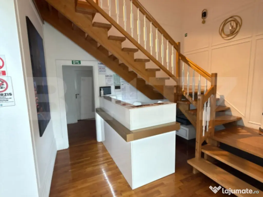 Blitz vă propune spre vânzare un spațiu comercial situat în zona Girocului, una dintre cele mai bune și căutate zone din Timișoara. Proprietatea are o suprafață utilă de 280 mp, fiind amplasată pe un teren de 642 mp cu un front stradal de 18 mp. Clădirea este dispusă pe parter și etaj, parterul fiind construit în 1990, iar etajul adăugat în 2005. Întreaga construcție a fost renovată complet în 2022, inclusiv instalațiile electrice și sanitare, și este izolată termic. Acoperișul este din țiglă, iar în 2024 au fost montate panouri solare, ceea ce reduce semnificativ costurile de întreținere. Spațiul este compartimentat inteligent, având 8 încăperi potrivite pentru activități comerciale, 2 băi, un birou, beci și garaj în curte. Beneficiază și de o cameră tehnică. În acte figurează ca spațiu cu destinație comercială (SAD) și deține negație ISU pentru funcționarea ca clinică, ceea ce îl face ideal pentru clinică medicală, centru de înfrumusețare, birouri sau alte servicii. Proprietatea se poate preda cu chiriași existenți sau liberă, în funcție de preferința cumpărătorului. Se vinde parțial mobilată și utilată, fiind dotată cu centrală proprie, încălzire prin calorifere, aer condiționat și toate utilitățile funcționale. Accesul este facil, iar curtea oferă 11 locuri de parcare (5 în față și 6 în curte). Spațiul reprezintă o investiție excelentă, fie pentru exploatare imediată, fie pentru dezvoltarea unei afaceri proprii într-o zonă cu vad foarte bun și acces rapid către centrul orașului. Cod ofertă / ID BLITZ: P154749 Id intern: P154749 An finalizare construcție: 1990 Stadiu construcţie: Finalizat Nr. locuri parcare: 5-10 Tip imobil: Casă/Vilă