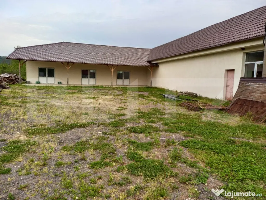 Blitz Targoviste va ofera in excusivitate oportunitatea de a achizitiona o proprietate desfasurata pe o suprafata de 425 mp aflata pe un teren intravilan, de 975 mp cu esire la DN72A, pe raza comunei Voinesti. Constructia este izoata, are acoperis nou din tabla Lindab, gardul pe lateral este din fier forjat , pe langa apa, gaze si electrucitate normala, proprietatea dispune de un Traf (120 kv), care permite desfasurarea oricarui tip de activitati cum ar fi : fabrica, clinica, abator, pensiune, etc. Se poate compartimenta dupa necesitati, deoarece structura solida permite orice tip de modificari . In apropriere regasim benzinarii, spatii comerciale,targul saptamanal din Voinesti, scoli,farmacie, statia de autobuz este peste strada. Pentru vizionari,nu ezitati sa ma contactati.