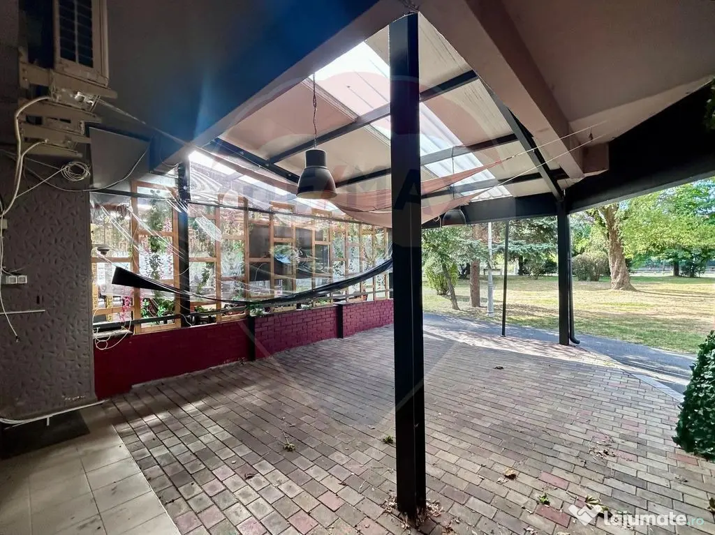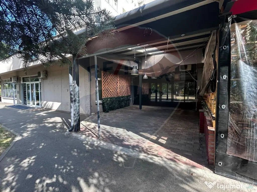 Spațiul are o suprafață construită de 155 mp și beneficiază suplimentar de o terasă concesionată de aproximativ 15 mp, un avantaj important pentru activitățile care implică servire sau zonă de relaxare pentru clienți.