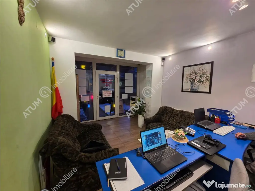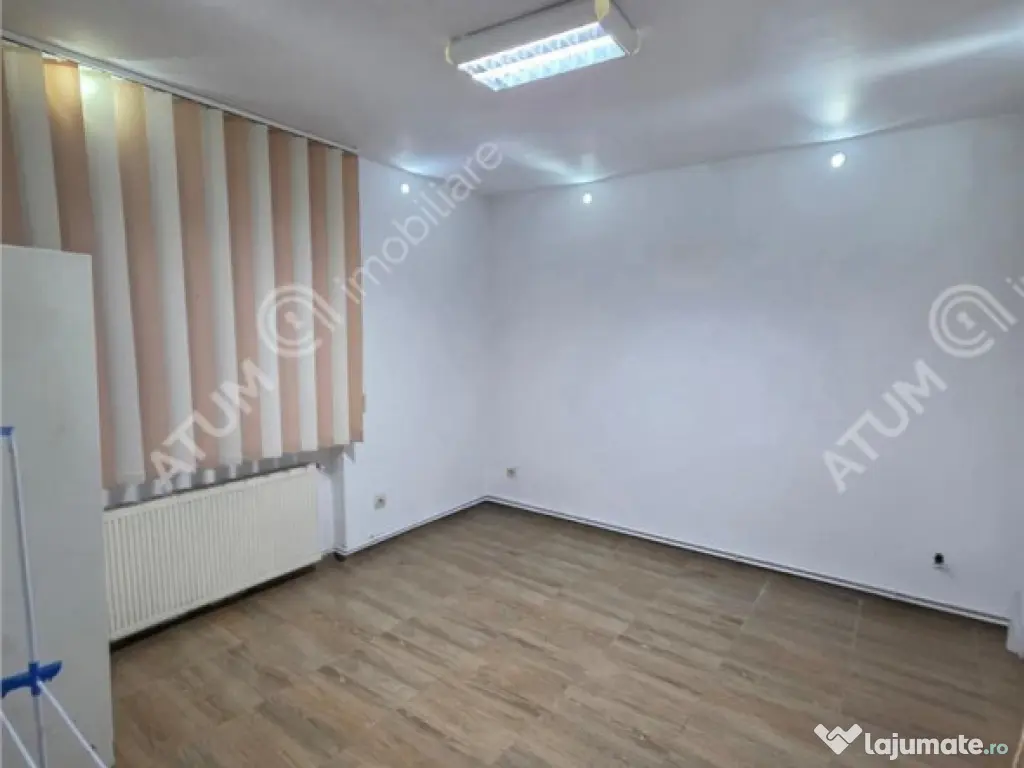 Va oferim spre inchiriere un spatiu comercial cu suprafata totala de 56 mp, in zona Vasile Milea din Sibiu, compartimentat astfel: o camera la intrare de 17 mp, hol de 6 mp, a doua camera de 11.5 mp, a treia camera 7.5 mp, si baie de 4 mp. Se preteaza perfect pentru diverse activitati profesionale: contabilitate, arhitectura, avocatura, notariat, design, agentie, farmacie. Ca si finisaje, beneficiaza de: parchet laminat, tamplarie din PVC cu geamuri de termopan, si mobilier sanitar in baie. Avantajul acestui spatu consta in amplasarea lui intr o zona de interes a orasului si intens cirulata pietonal. Accesul in spatiu se face din strada principala. La nevoie, spatiul poate fi refacut open-space. Valoarea de inchiriere este de 1500 euro/ luna garantie. ID intern 3219. Suprafaţă totală: 56 m² An finalizare construcție: 1990 Vitrină: 10 m Stadiu construcţie: Finalizat Înălţime spaţiu: 3 m Număr încăperi: 3 Număr Grupuri Sanitare: 1 Tip imobil: Bloc de apartamente