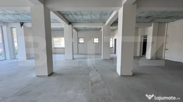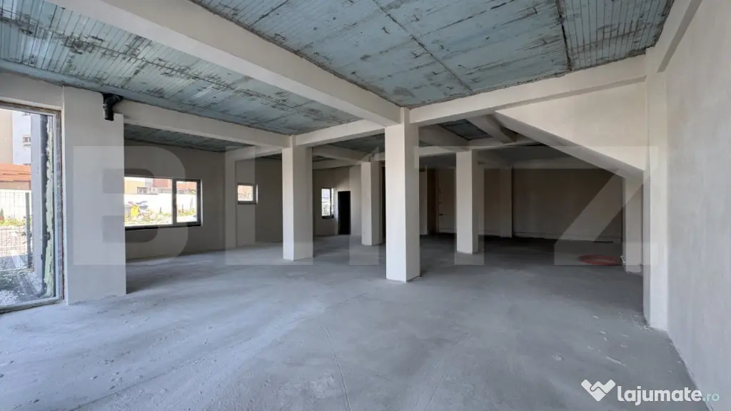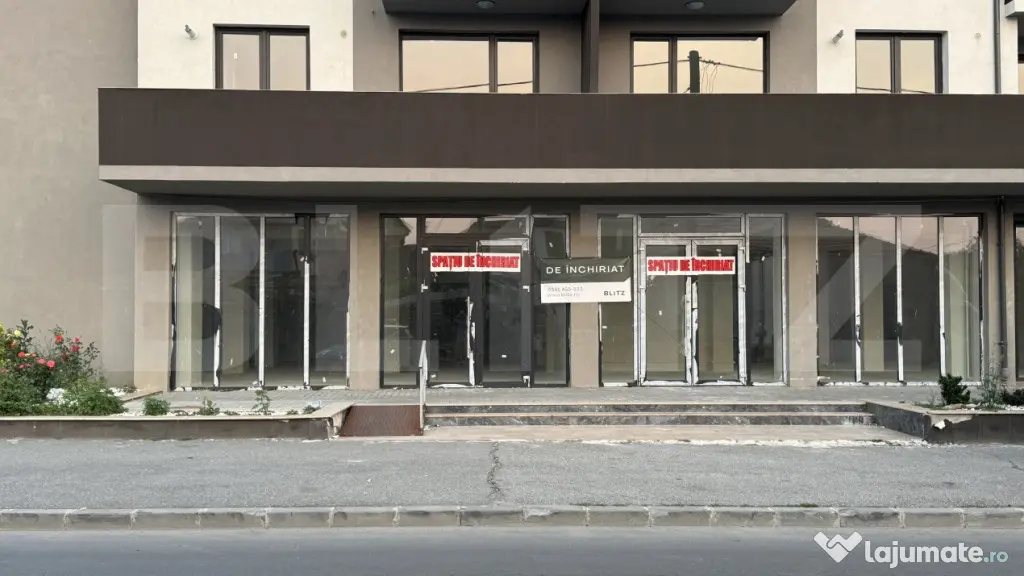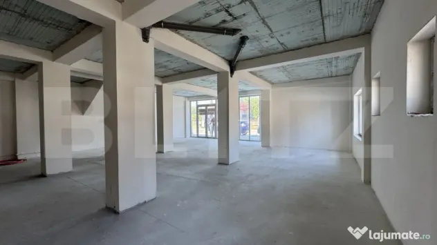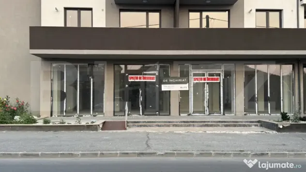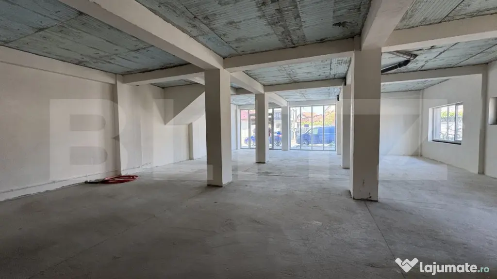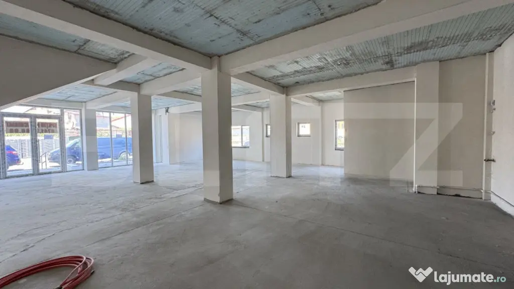 Spațiul se predă semifinisat (cum apare în poze) cu perioadă de grație pentru amenajare, beneficiază de toate utilitățile și de intrări separate în față și în spate. Imobilul se prezintă sub forma unui open space cu spațiu pentru grupul sanitar, putând fi ușor de compartimentat, cu posibilitatea de parcare în față și un bun vad comercial, atât pietonal, cât și auto, cu vitrină la fațadă (7 m)