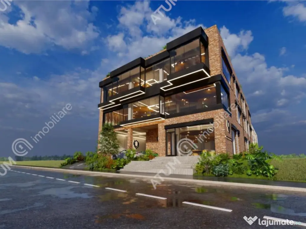 Va propunem spre vanzare o cladire moderna cu regim de inaltime P 2E, situata in imediata apropiere a centrului comercial Shopping City Sibiu, intr-o zona cu trafic intens si vizibilitate excelenta. Imobilul beneficiaza de o amplasare strategica, fiind ideal pentru activitati comerciale, birouri, clinici sau investitie cu randament bun. Cladirea are o suprafata utila de 1.230 mp si o suprafata construita totala de 1.480 mp, fiind construita pe o structura solida in cadre de beton armat, cu inchideri din caramida si izolatie din vata bazaltica. Tamplaria este din aluminiu, iar fatada este finisata cu caramida decorativa de exterior, oferind un aspect elegant si distinct. Imobilul este pregatit pentru supraetajare, existand posibilitatea adaugarii unui etaj retras de aproximativ 350 mp, care poate fi configurat ca penthouse sau spatiu de birouri. Pentru acest etaj exista optiunea montarii unui lift exterior dedicat. Configuratia actuala este urmatoarea: Parter: spatiu comercial de 225 mp, doua grupuri sanitare, spatiu pentru depozitare si camera tehnica Etajul 1 si Etajul 2: spatii open-space cu doua grupuri sanitare pe fiecare nivel; fiecare etaj poate fi compartimentat in doua unitati distincte, cu acces separat din casa scarii Spatiile interioare sunt in stadiu de gri si nu sunt compartimentate, oferind astfel flexibilitate totala pentru configurarea ulterioara in functie de activitatea desfasurata sau de cerintele viitorului proprietar. Cladirea beneficiaza de urmatoarele avantaje: - 18 locuri de parcare amenajate in curtea proprie - curte interioara complet pavata si organizata - infrastructura completa pentru utilitati (electricitate, gaz, apa, canalizare, internet) - expunere excelenta la o artera intens circulata - arhitectura moderna si fatada reprezentativa Spatiul reprezinta o oportunitate excelenta pentru investitori sau companii care doresc o cladire multifunctionala, bine pozitionata, cu potential de extindere si adaptare in functie de nevoi. Valoarea de achizitie este de 2.350.000 euro TVA. ID intern: 2980. Suprafaţă totală: 1500 m² An finalizare construcție: 2024 Vitrină: 10 m Stadiu construcţie: Finalizat Înălţime spaţiu: 3 m Număr încăperi: 6 Număr Grupuri Sanitare: 6 Posibilitate parcare: Da Nr. locuri parcare: 10-20 Tip imobil: Centru comercial