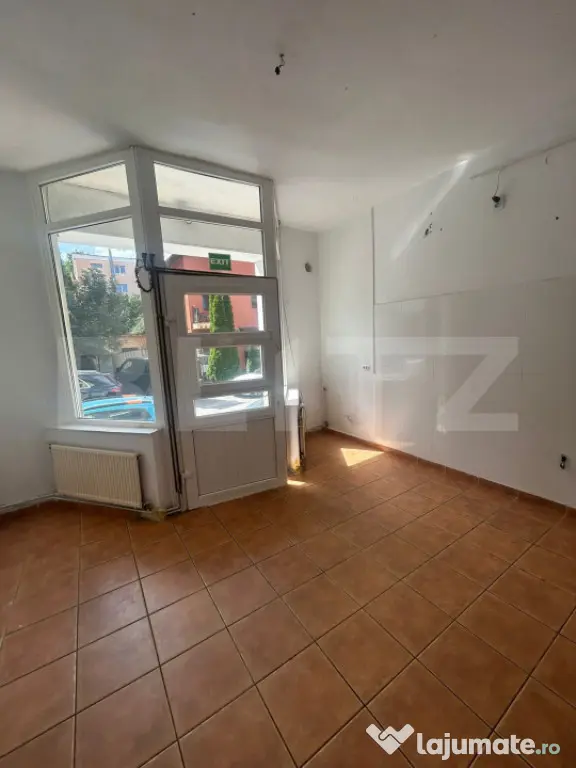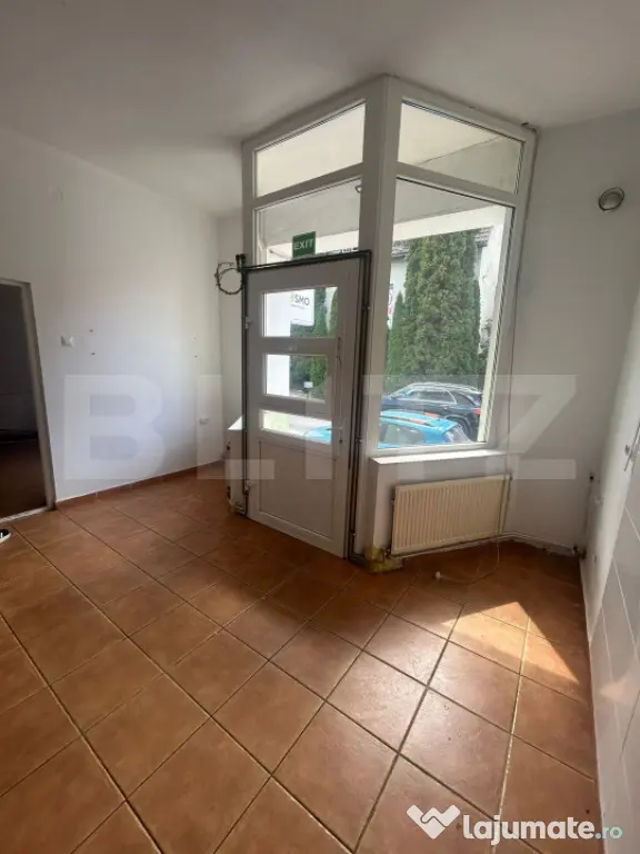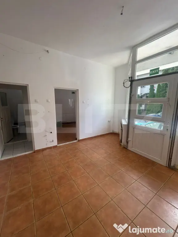 Blitz propune spre inchiriere spatiu comercial stradal, 35 mp, intrare separata din strada, zona cu vad, spatul are 2 incaperi si 1 baie separata, utilitatile separat, centrala proprie, vitrina la strada, se poate inchiria pentru cabinete, salon, catering.