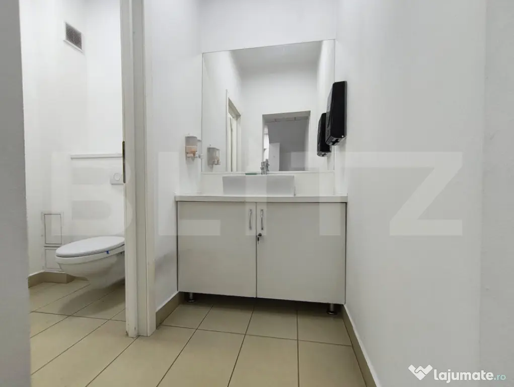 Spatiul dispune de 4 bai, iar intr-una dintre incaperi exista suplimentar o zona separata cu dus. Este dotat cu calorifere si termostate pentru control eficient al temperaturii, precum si cu aparate de aer conditionat, asigurand confort pe tot parcursul anului.