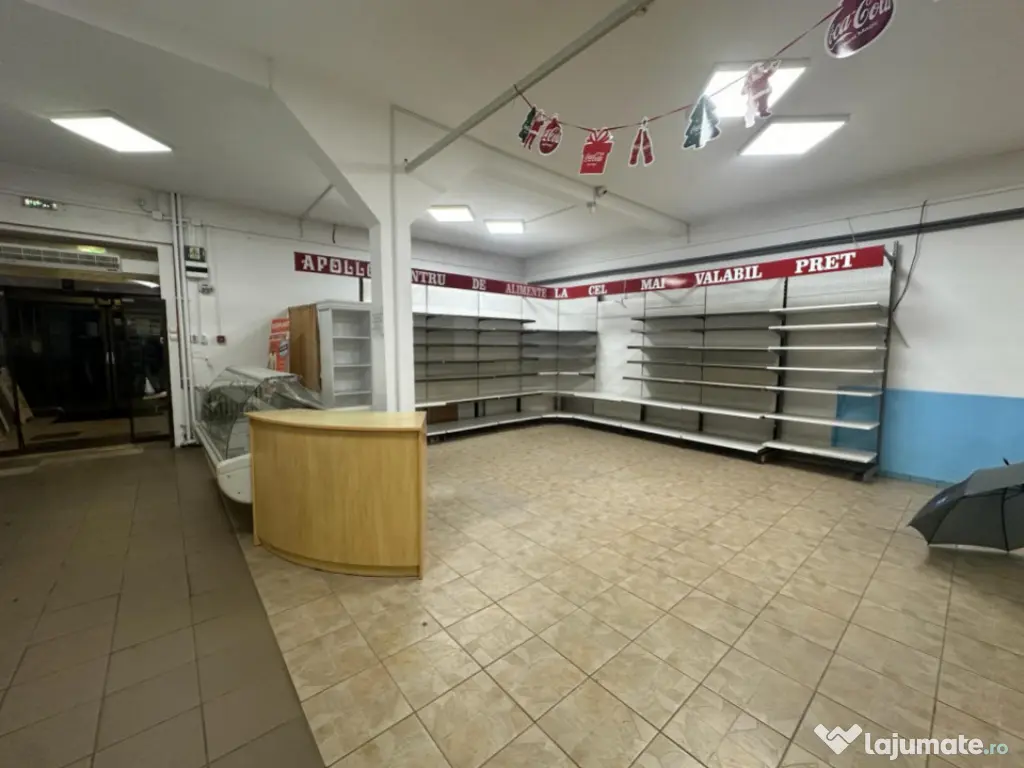 Agentia Smart Imobiliare va ofera spre inchiriere un spatiu comercial in suprafat de 60mp cu destinatie de magazin alimentar.Spatiul se afla in incinta comuna cu un alt magazin avind ca destinatie comercializarea de obiecte tehnico sanitatare.Spatiun dispune de toate utilitatie necesare.Dispune de parcare exterioara. Pentru mai multe informatii va rugam sa contactati agentia imobiliaara SMART,precizind IDul P15240 Prețul de promovare este de 540€ /negociabil în funcție de condițiile stabilite împreună cu proprietarul. Pentru mai multe detalii despre această proprietate și pentru programarea unei vizionări, vă rugăm să contactați consultantul responsabil. Smart Imobiliare vă oferă consultanță completă pe tot parcursul tranzacției, de la prima vizită și până la predarea cheilor. Id intern: P15240 An finalizare construcție: 1980 Stadiu construcţie: Finalizat Comision cumpărător: 50% Nr. locuri parcare: 3 Tip imobil: Centru comercial
