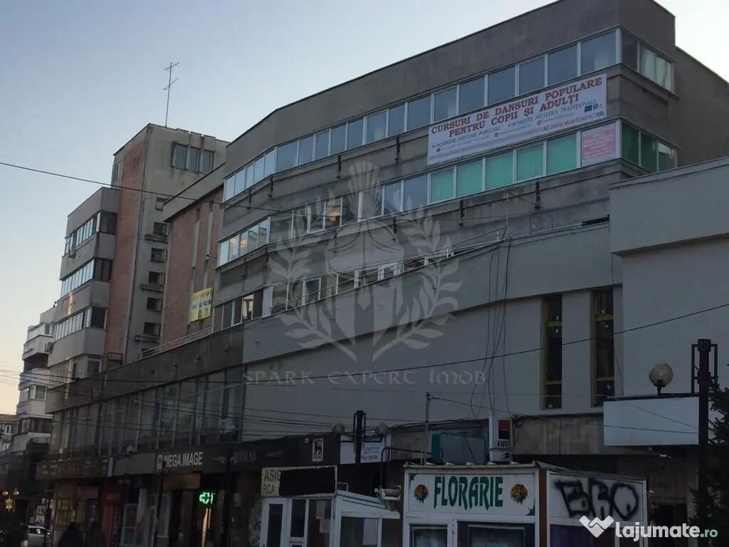 SPARK EXPERT IMOB va prezinta Spatii de birouri de inchiriat in Mercur Shopping Center, zona centrala a orasului Ploiesti, langa Consiliul Judetean, Piata Ion Luca Caragiale si Palatul Culturii. In zona se regasesc numeroase restaurante, galerii comerciale, parcuri, banci si institutii. Accesul cu automobilul este excelent, beneficiind de conexiuni rapide si directe cu oricare parte a orasului. Transportul public include statii de autobuz, troileibuz si tramvai la doar 3-4 minute de cladire. Mercur L-line este o cladire finalizata in 1980, cu o suprafata utila totala de 1.000 m2. Cladirea este desfasurata pe parter si 4 etaje, cu o suprafata aproximativa a etajului de 250 m2. Cladirea nu beneficiaza de locuri de parcare, dar in zona se poate parca contra cost An finalizare construcție: 1980 Vitrină: 2 m Stadiu construcţie: Finalizat Număr încăperi: 3 Număr Grupuri Sanitare: 1 Posibilitate parcare: Nu Tip imobil: Bloc de apartamente