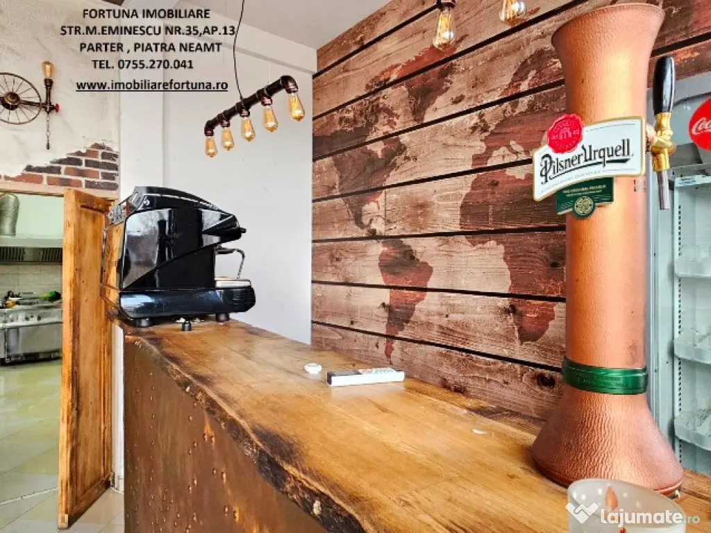 OFERTĂ ÎNCHIRIERE! SPAȚIU COMERCIAL / RESTAURANT, CU TRAFIC INTENS PIETONAL ȘI AUTO, TERASĂ MARE ȘI GRĂDINĂ DE VARĂ, ZONA 1 MAI, 1.500 EURO FORTUNA IMOBILIARE oferă pentru închiriere spațiu comercial / restaurant cu suprafața de 110 mp, terasă închisă și acoperită ( prevăzută cu sistem de încălzire ) cu suprafața de 50 mp și grădină de vară cu suprafața de 150 mp, situat la ieșirea din Piatra Neamț. Este poziționat stradal, beneficiază de toate utilitățile și este dotat cu aragaz, plită, cuptor, hotă - profesionale, masă inox, dulapuri inox, lăzi frigorifice, frigidere, cuptor microunde, mașină spălat vase etc. Deține o curte interioară betonată, ideală pentru parcare auto, sistem de alarmă și de supraveghere video și este disponibil pentru închiriere pe termen lung. Poate genera venituri imediat. Preț chirie 1.500 Euro. Pentru o prezentare detaliată a acestei oferte, furnizarea unor informații suplimentare referitoare la situația juridică / identificarea imobilului și programarea unei vizionări, vă invităm la sediul nostru, Fortuna Imobiliare, situat pe str. M. Eminescu, nr. 35, ap. 13, parter, lângă fostul Tribunal, tel. contact 0755.270.041. Your comfort is our priority ! Oferta noastră completă o găsiți aici: https://imobiliarefortuna.ro/ Stadiu construcţie: Finalizat Tip imobil: Alte tipuri