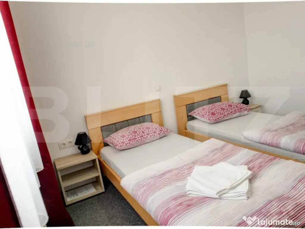 Blitz propune spre vânzare o proprietate unică - un restaurant cu pensiune într-o locație idilică la Joseni, Bistrița-Năsăud. Această proprietate de excepție cuprinde 8 camere spatioase cu baie, plus un apartament matrimonial luxos, toate oferind confort și oaspeților noștri o experiență plăcută. Sala de evenimente generoasă, cu o suprafață de 600mp, este ideală pentru organizarea de nunti sau alte evenimente, cu o capacitate de 300-350 de persoane. Bucătăria este dotată cu echipamente moderne, inclusiv un cuptor de 10 tavi, mașină de spălat vase și 2 camere de refrigerare (12mp + 10mp). Avem, de asemenea, anexe pentru depozitarea lemnelor, un atelier mecanic și garaje. Sistemul de încălzire al clădirii este asigurat de panouri solare de 27 kW, cu posibilitatea de extindere, și o pompă de căldură (geotermică) pentru întreaga clădire. În plus, avem o parcare generoasă de 2200mp care poate găzdui aproximativ 50 de mașini și 2 stații de încărcare pentru mașinile electrice. Proprietatea include un proiect AMPOC, măsura de retehnologizare 411, în valoare de 550.000 euro, cu cofinanțare de 25% din fonduri proprii. În plus, sunt disponibile 2 autoutilitare electrice cu dubă frig pentru livrări. Se oferă, de asemenea, un serviciu auto complet pentru funcționarea eficientă a restaurantului. Suplimentar, proprietatea are 2 terase generoase, iar acoperișul este în curs de înlocuire conform proiectului existent. Această proprietate reprezintă o oportunitate excelentă de investiție, cu un potențial enorm de creștere. Contactați-ne pentru mai multe informații sau pentru a programa o vizionare. Vă așteptăm cu drag să descoperiți această bijuterie așezată în inima frumoasei noastre regiuni. Cod ofertă / ID BLITZ: P14320 Id intern: P14320 Număr niveluri imobil: 2 Număr Băi: 16 Nr. locuri parcare: 5-10