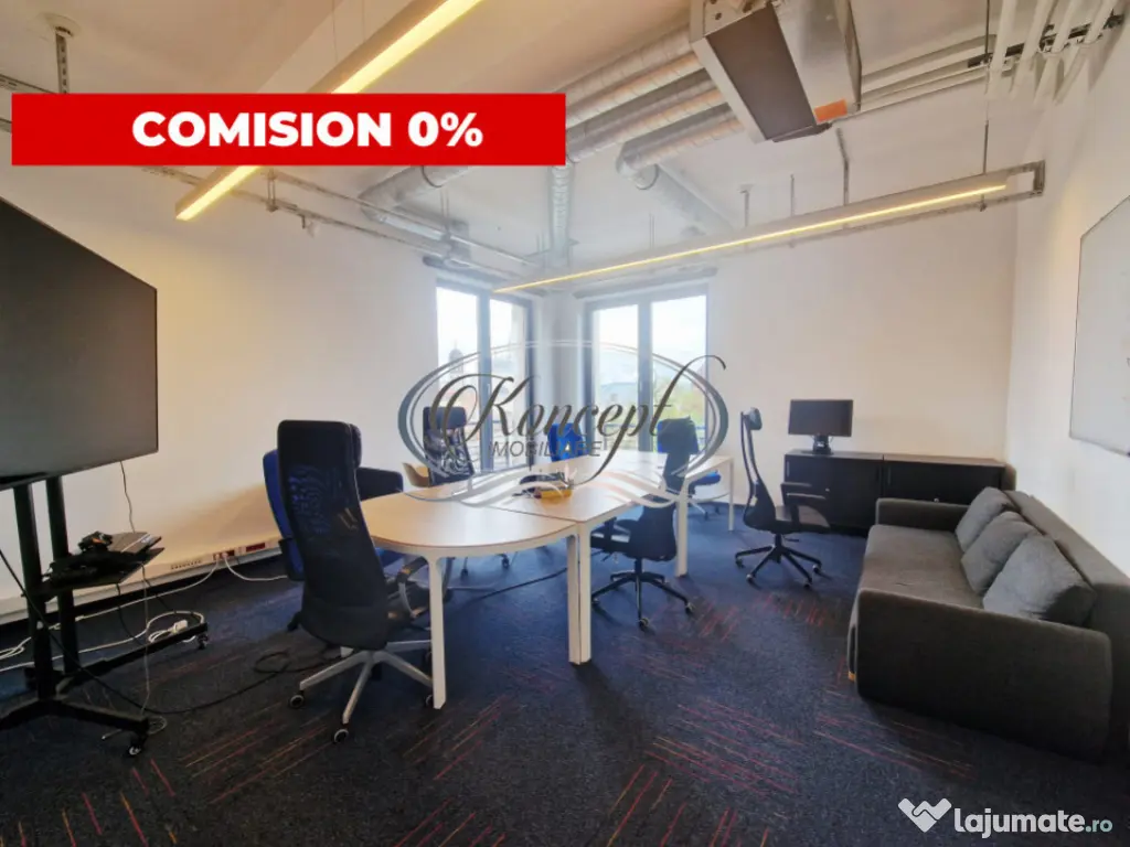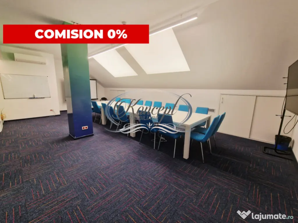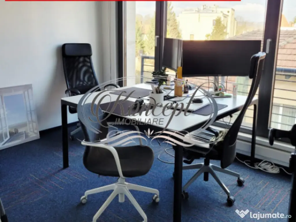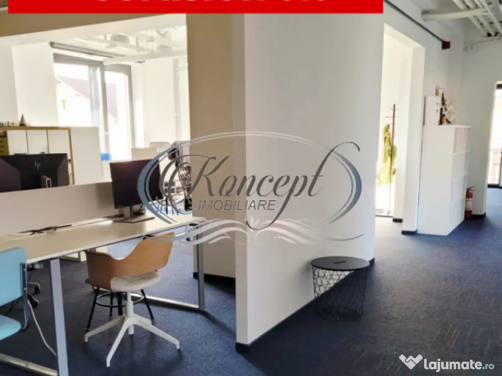 Koncept Imobiliare va ofera spre inchiriere un spatiu de birouri situat intr-o cladire de birouri premium din zona centrala, o locatie strategica pentru companii care isi doresc vizibilitate, accesibilitate si un mediu profesional de top. Spatiul este amplasat la etajul 2 al imobilului si beneficiaza de toate facilitatile necesare pentru desfasurarea activitatilor de business la standarde ridicate. Proprietatea dispune de o suprafata utila de 205 mp si este compartimentata eficient in 9 birouri individuale, camera server dedicata, chicineta, balcon, 2 bai si zona de receptie, oferind flexibilitate in organizarea echipelor si a fluxurilor de lucru. Spatiul este gandit pentru functionalitate maxima, fiind potrivit pentru diverse tipuri de activitati precum sedii de companie, IT, consultanta, servicii sau back-office. Din punct de vedere tehnic, spatiul beneficiaza de finisaje moderne si infrastructura adaptata cerintelor actuale: sistem de ventilatie cu aport de aer proaspat, climatizare prin ventiloconvectoare cu zone independente de temperatura, retea completa pentru IT si comunicatii, precum si camera server dedicata echipamentelor. Cladirea este dotata cu lift, administrare profesionala, acces securizat pe baza de card, acces 24/7 si paza permanenta, asigurand un mediu sigur si eficient pentru desfasurarea activitatii. Un avantaj major il reprezinta includerea in pret a utilitatilor (curent, internet etc.), precum si accesul la facilitati suplimentare, cum ar fi sala de conferinte. De asemenea, sunt incluse 5 locuri de parcare supraterane nominale, un beneficiu esential in zona centrala. Costurile de administrare sunt de 2 euro/mp + TVA si se adauga la pretul de inchiriere. Prin pozitionare, compartimentare si dotari, acest spatiu reprezinta o alegere excelenta pentru companiile care isi doresc un sediu reprezentativ, complet functional si disponibil imediat, facilitand o relocare rapida fara investitii suplimentare. Pentru informatii suplimentare, programarea unei vizionari sau pentru a afla oferta noastra completa va stam la dispozitie telefonic, prin e-mail sau la sediul agentiei noastre, pe str. Aviator Badescu, nr. 19, Cluj-Napoca. Id intern: P21353 Suprafaţă totală: 240 m² An finalizare construcție: 2020 Stadiu construcţie: Finalizat Clasă birouri: A Comision cumpărător: 0% Nr. locuri parcare: 5-10 Tip imobil: Clădire de birouri