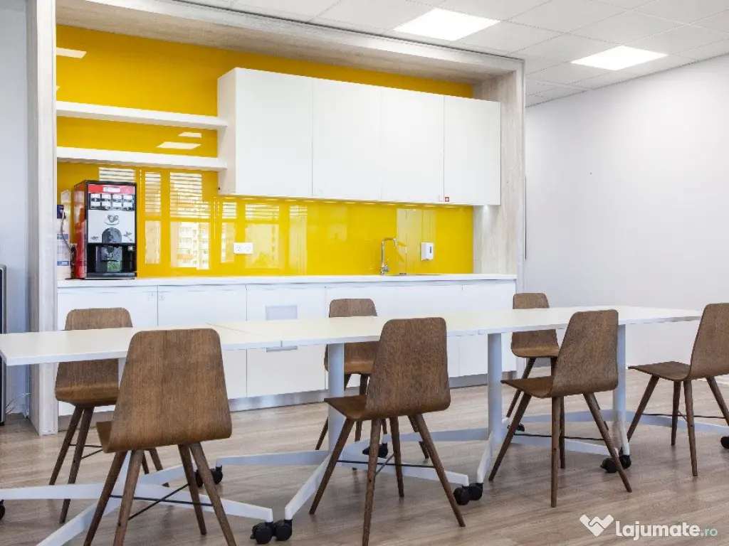 Rezervați un spațiu de birou complet echipat pentru patru persoane și ne vom asigura că totul decurge fără probleme. Această ofertă include 20 mp de spațiu de birou privat, plus acces la zonele comune. Găsiți tot ce aveți nevoie pentru a face afaceri în sectorul administrativ dinamic din București. Sun Plaza face parte dintr-un popular complex comercial cu legături de autobuz, tramvai și metrou chiar prin oraș. Colaborați în săli de întâlniri elegante, socializați în zone de recreere confortabile, lucrați productiv într-un spațiu de birou luminos sau pur și simplu rezervați o masă de birou prin rotație într-unul dintre spațiile comune cu stil. Aveți nevoie de o pauza? Bucurați-vă de o plimbare relaxantă în parcul mare de lângă locație. Construiți un cămin pentru afacerea dumneavoastră cu un spațiu de birou privat de 20 metri pătrați în Regus Sun Business Centre, ideal pentru 4 angajați. Birourile noastre medii sunt complet echipate și au toate serviciile incluse - de la mobilier la rețeaua WiFi de mare viteză - ca dumneavoastră să vă puteți concentra pe dezvoltarea afacerii dumneavoastră. Găsiți un spațiu de birou flexibil pe care îl puteți închiria fie și numai pentru o zi, sau rămâneți la noi pentru mai mult timp și personalizați-vă spațiul pentru a-l potrivi nevoilor specifice ale afacerii dumneavoastră. Biroul privat Regus include: - Acces la rețeaua noastră globală cu mii de locații în întreaga lume - Echipă de asistență și personal de recepție bine pregătit - Tehnologie și rețea Wi-Fi sigure, la standarde profesionale - Imprimante și acces la servicii de asistență administrativă - Curățenie, utilități, mentenanta, mobilier, wifi și servicii de pază - Spațiu de birou disponibil cu ora, cu ziua sau cu luna - Evenimente periodice de networking și comunitate - Rezervare simplă și administrare cont prin aplicația noastră - Configurații personalizabile și flexibile - Extindeți-vă sau mutați-vă în alte locații în funcție de nevoile dumneavoastră - Mobilier ergonomic, de înaltă calitate - Acces suplimentar la 60 metri pătrați de spațiu de lucru comun - Access gratuity la salile de sedinta/comunitate - Prețurile încep de la 941 EUR *Toate imaginile prezentate în această ofertă aparțin locațiilor noastre, dar este posibil să nu fie chiar din acest centru. Întrebați acum Suprafaţă totală: 80 m² Stadiu construcţie: Finalizat Tip imobil: Clădire de birouri