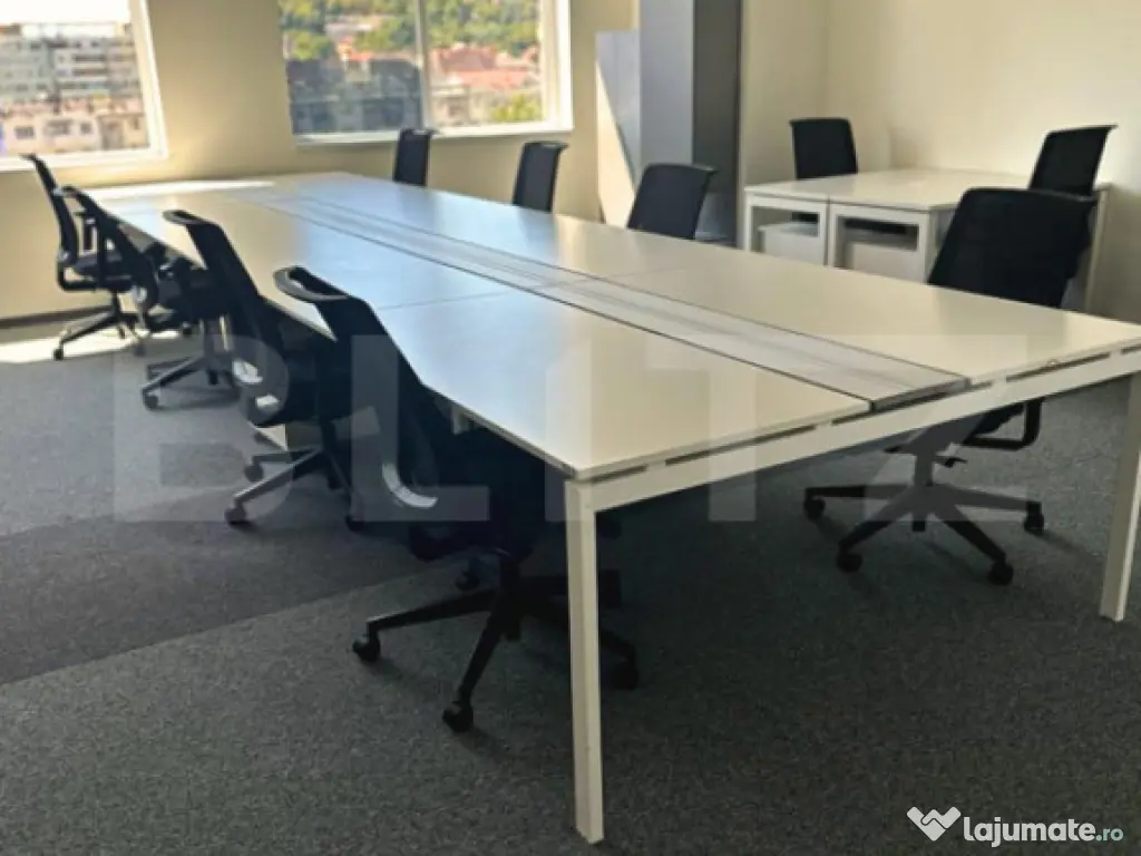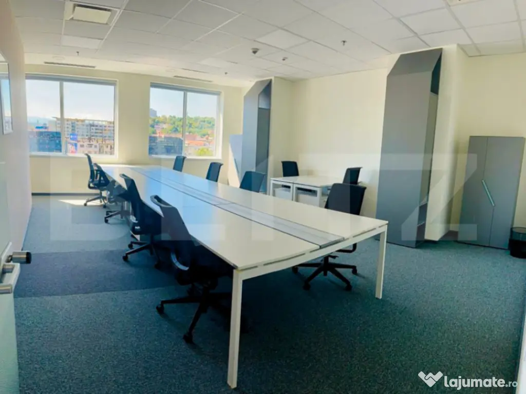 BLITZ vă propune spre închiriere un spațiu de birouri modern, situat într-o clădire de birouri renumită din zona centrală a Clujului, ideal pentru companii care își doresc vizibilitate, acces facil și un mediu de lucru profesionist. Spațiul este amplasat la etajul 6 și beneficiază de o suprafață totală de 500 mp pe nivel, oferind flexibilitate în compartimentare și amenajare, în funcție de nevoile chiriașului. Detalii financiare: 15,5 €/mp + TVA – pentru închirierea întregului etaj (500 mp) 17 €/mp + TVA – pentru închirierea a jumătate de etaj (250 mp) În cazul închirierii parțiale, băile și bucătăria vor fi comune cu celălalt chiriaș Service charge: 5 €/mp + TVA (open book) Utilități estimate: aprox. 2.5 €/mp + TVA Avantaje: Locație centrală, cu acces facil către principalele puncte de interes Facilități Private: Bucătărie complet echipată și grupuri sanitare proprii, dedicate exclusiv echipei tale; Plug & Play: Spațiul se predă complet mobilat cu mobilier ergonomic de înaltă calitate și infrastructură IT pregătită; Clădire de birouri consacrată, cu standarde ridicate Etaj superior – lumină naturală generoasă și priveliște panoramică Spațiu eficient, potrivit pentru open space sau compartimentare modulară Ideal pentru sedii de companie, IT, servicii profesionale sau hub-uri de business Pentru mai multe informații sau programarea unei vizionări, nu ezitați să ne contactați! Cod ofertă / ID BLITZ: P168501 Id intern: P168501 Stadiu construcţie: Finalizat Clasă birouri: A Tip imobil: Clădire de birouri