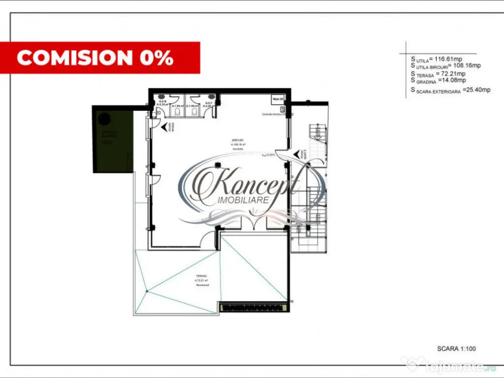 Koncept Imobiliare va ofera spre inchiriere un spatiu pentru activitati de birouri in imediata vecinatate a hotelului Belvedere. Spatiul este situat intr-o cladire administrativa, are suprafata utila de 116.61 mp si este compus dintr-un open-space, 2 grupuri sanitare si zona unde se poate amenaja o chicineta. Totodata in pretul spatiului este inclusa si o terasa de 72.21 mp ce ofera una dintre cele mai spectaculoase vederi din Cluj-Napoca. Spatiul este in curs de renovare, este disponibil imediat si se preteaza perfect pentru orice tip de activitate de birou, cu sau fara public. Pentru informatii suplimentare, programarea unei vizionari sau pentru a va prezenta oferta noastra completa, nu exitati sa ne contactati telefonic, prin e-mail sau la sediul agentiei noastre de pe str. Aviator Badescu nr. 19, Cluj-Napoca. Id intern: P19526 Suprafaţă totală: 250 m² An finalizare construcție: 2010 Stadiu construcţie: Finalizat Clasă birouri: A Comision cumpărător: 0% Tip imobil: Clădire de birouri