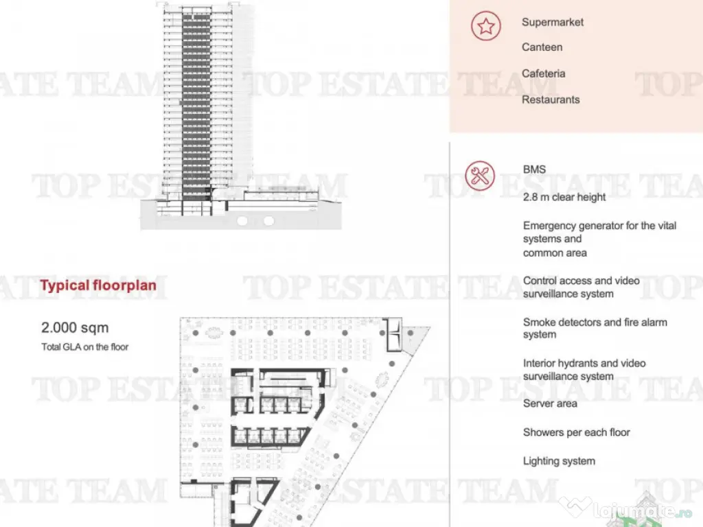 Spatiu de birouri premium de inchiriat ndash; etaj superior, zona Aurel Vlaicu Va propunem spre inchiriere un spatiu de birouri premium, situat intr-o cladire de birouri moderna, in apropiere de statia de metrou Aurel Vlaicu, una dintre cele mai apreciate zone de business din Bucuresti. Amplasat la etajul 20, spatiul beneficiaza de lumina naturala abundenta si panorama impresionanta asupra orasului, oferind un mediu de lucru reprezentativ, ideal pentru companii care isi doresc vizibilitate si un sediu la standarde inalte. Detalii spatiu: Suprafata birouri: aproximativ 650 mp GLA Etaj: 20 Predare: as is, cu finisajele existente Fit-out incentive oferit: 100 EUR/mp Conditii comerciale: Chirie birouri: 23 EUR/mp TVA Service Charge: 5 EUR/mp TVA (sistem open book) Perioada contractuala: 65 luni (60 luni platibile 5 luni rent free) Rent free: 1 luna oferita pe an Parcare: Locuri de parcare: de discutat Ratie parcare: 1 loc / 100 mp GLA Chirie parcare: 140 EUR/loc TVA Spatiul este ideal pentru sedii corporate, companii IT, management sau firme de consultanta care cauta un birou exclusivist intr-o locatie de top. Disponibil imediat. Pentru detalii suplimentare sau programarea unei vizionari, va rugam sa ne contactati. Suprafaţă totală: 650 m² An finalizare construcție: 2016 Stadiu construcţie: Finalizat Înălţime spaţiu: 3 m Tip imobil: Bloc de apartamente