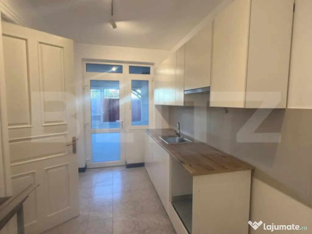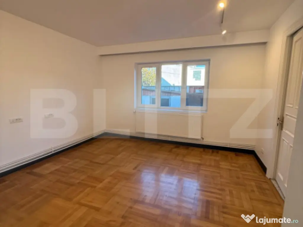 Blitz va propune spre inchiriere un spatiu de birouri decomanat, renovat integral, aflat la prima inchiriere, cu o suprafata de 100 mp, situat la parter, in zona centrala. Beneficiaza de curte privata si securizata fiind compartimentat eficient in 3 camere, 1 bucatarie, o camara, 1 baie impartita in doua compartimente. Dotari si facilitati: - aer conditionat - termopane - centrala termica proprie - internet - doua locuri de parcare incluse in curte, cu posibilitatea de a inchiria locuri suplimentare, daca se doreste Spatiul este disponibil imediat si se preteaza pentru: - activitati de consultanta - birouri de avocatura - contabilitate - sediu firma - call center etc. Pentru detalii suplimentare si progamarea unei vizionari, va rugam sa ne contactati. Pret inchiriere 1000 euro pentru persoana fizica si 1000 euro + TVA pentru persoana juridica. Cod ofertă / ID BLITZ: P160353 Id intern: P160353 An finalizare construcție: 1997 Stadiu construcţie: Finalizat Clasă birouri: B Nr. locuri parcare: 2 Tip imobil: Casă/Vilă