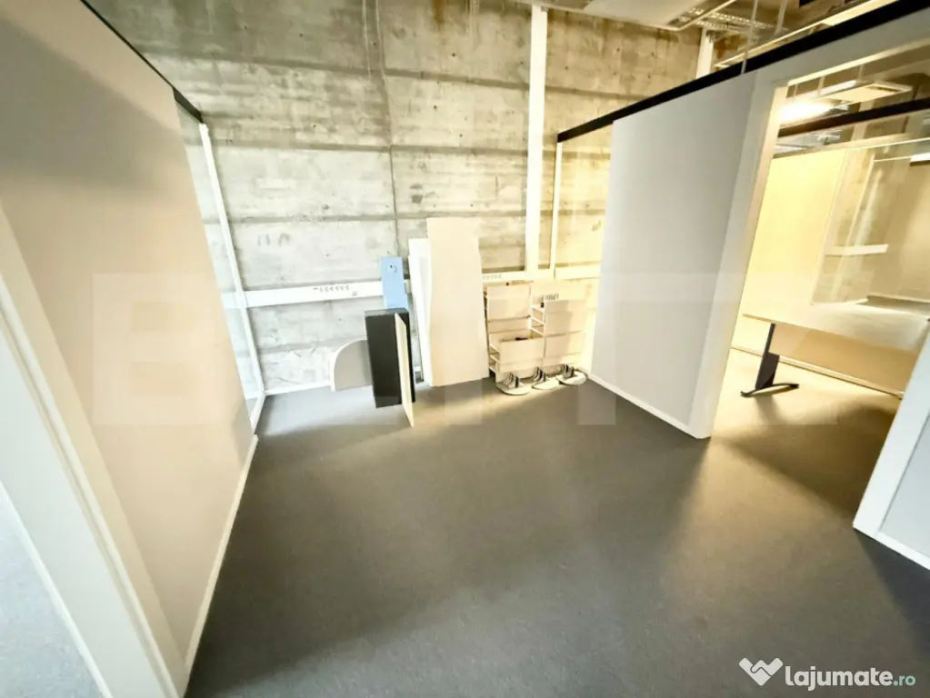 Spațiul se predă parțial finisat, cu posibilitatea de a fi compartimentat și finisat, în funcție de nevoile chiriașului. Astfel, se poate configura ideal pentru activități de birou, clinică medicală, cabinet, agenție, showroom, IT, servicii profesionale etc.