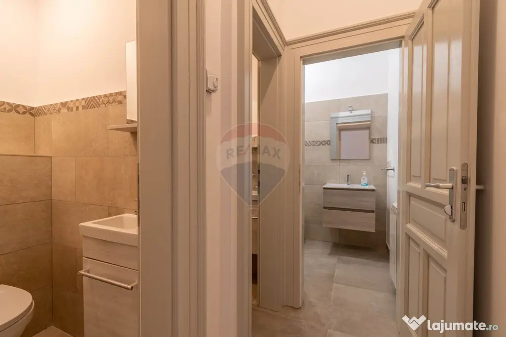 Oferim spre închiriere un spațiu de birou modern, situat în inima orașului Cluj-Napoca, cu o suprafață de 148 mp. Spațiul este compartimentat în 5 birouri luminoase, o bucătărie complet utilată și o baie modernă. Situat la etajul 1 al unui imobil recent renovat în 2024, acest spațiu oferă un mediu de lucru confortabil și profesionist. Ideal pentru firme care doresc să își desfășoare activitatea într-o zonă centrală, aproape de toate facilitățile orașului.
