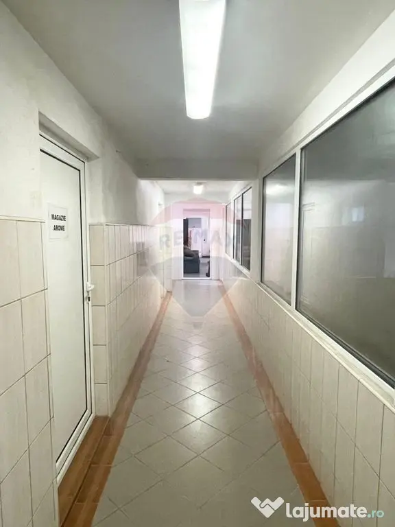 - parter: un hol lung din care se intra separat in fiecare incapere: chicineta de 35mp, 2 spatii de birou separate de 17.70mp respectiv 13.61mp, debara de 4mp, grupuri sanitare, alte 3 incaperi de 63mp respectiv 12.85mp si 19.32mp si casa scarii care duce la etaj;