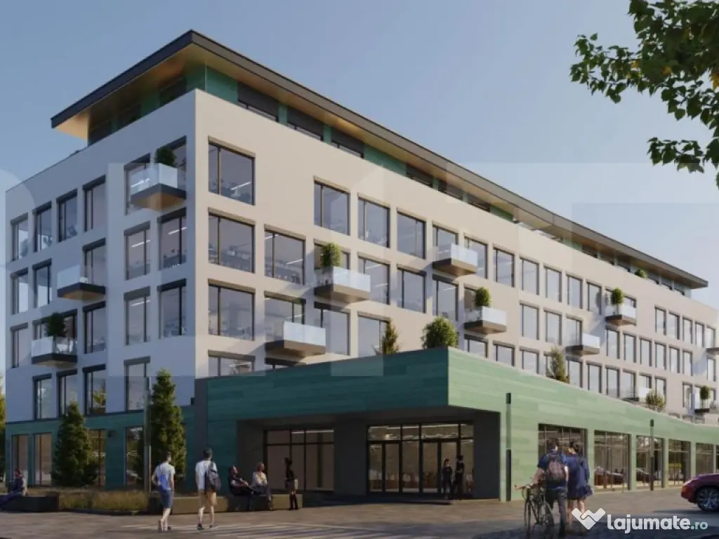 Blitz Va ofera 255 mp de birouri tip open space, desfasurati pe un singur nivel, in cea mai nou cladirea clasa A++ din oras. Situata într-o zona cu acces facil si multe facilitati din Cluj Napoca, clădirea de birouri Clasa A++ este cea mai moderna cladire de birouri din zona si are soluții constructive inovatoare, fiind dotata cu cea mai recentă tehnologie durabilă, cu facilități excelente în cadrul unui proiect de utilizare mixtă. Cladirea are acces direct din principal bulevard și se caracterizează printr-un concept unic pe piața de birouri avand capacitatea dovedită de a atrage clienti importanti din piata. Printre facilitati mentionam: • 9.335 mp. de suprafata total inchiriabila, pentru birouri • 189 unități de parcare • Vizibilitate excelentă din bulevard principal, cel mai mult bulevard aglomerat din oraș • Laturile expuse la zona verde si parcuri • Transport public • Mall de succes la câțiva pași Structura cladirii si nivelul tehnic este , astfel : • 1 nivel subteran pentru parcare auto, zona tehnica si depozitare • 6 niveluri superioare de birouri și retail • Parter dedicat zonei comerciale care este un element cheie al proiectului, cu un mix creativ de retail care seadapteaza clientului local. Lifturi: • Sistemul de transport vertical de înaltă calitate a fost proiectat pentru bloc, format din 4 lifturi care deservesc intregul imobil Sistem avansat HVAC: • ventiloconvector cu 4 conducte care servesc pentru incalzirea si racirea suprafetelor desfasurate - Spații vitrate - Pardesele tehnice - Jaluzele exterioare Warema - Sisteme controlate BMS - Locuri de parcare pentru vehicule electrice/hibride dotate custatii cu incarcare rapida și parcare dedicată pentru biciclete. -Sistem de iluminat LED. - Sistem ISU integral. Suprafata este prevazuta cu o terasa circulabila de 60 de mp, spatii tehnice si posibilitate amenajare chicineta sau loc de luat masa. Cheltuielile cu utilitatile si spatiile comune dar si parcarile fac obiectul unei discutii separate in functie de necesitati. Pentru mai multe informatii, va invitam sa ne contactati. Cod ofertă / ID BLITZ: P3270 Id intern: P3270 Stadiu construcţie: Finalizat Clasă birouri: A Nr. locuri parcare: 4 Tip imobil: Bloc de apartamente