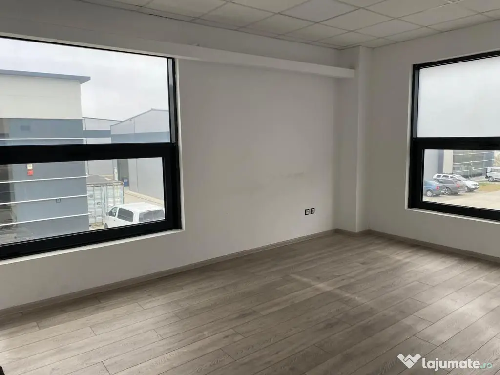 Birouri cu finisaje clasa A,cu doua gr. sanitare , chicineta,receptive,retea net si telefon,cortina aluminium , pereti interior de sticla.