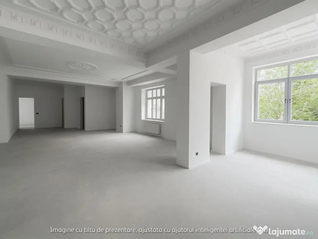 Descoperiti un spatiu exclusiv disponibil spre inchiriere in inima Bucurestiului, in prestigioasa zona Aviatorilor, la doar cativa pasi de Parcul Herastrau. Se inchiriaza demisolul si parterul dintr-o vila impunatoare, finalizata in 2025, care imbina eleganta arhitecturii clasice cu dotari moderne de top. Acest spatiu este ideal pentru birouri premium, clinici private, ambasade sau activitati recreative precum fitness, balet sau yoga. Activitatile de tip restaurant sau cafenea nu sunt permise. Spatiul inchiriat are o suprafata totala utila de 267 mp, impartita in demisol de 132 mp si parter de 135 mp. Compartimentarea este flexibila si poate fi adaptata in functie de specificul activitatii. Exista doua intrari independente pentru eficienta operationala, opt camere, doua bai si o parcare proprie cu minim 5 locuri. Curtea de 350 mp poate fi utilizata si pentru parcarea suplimentara. Vila dispune de lift interior, finisaje premium, fatada eleganta si infrastructura moderna, oferind un mediu de lucru exclusivist si reprezentativ. Avantajele locatiei includ pozitie ultracentrala intr-una dintre cele mai exclusiviste zone din Bucuresti, vizibilitate excelenta pentru business-uri care pun accent pe imagine si prestanta, acces facil la mijloace de transport, institutii publice si spatii verzi. Spatiul generos si luminos permite personalizarea integrala pentru diverse activitati. Transforma acest spatiu intr-un sediu reprezentativ pentru afacerea ta. Contacteaza-ne pentru mai multe detalii si pentru programarea unei vizionari. Număr Băi: 3 Posibilitate parcare: Da Nr. locuri parcare: 3 Curent Apă Canalizare Gaz Demisol