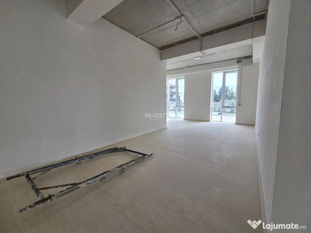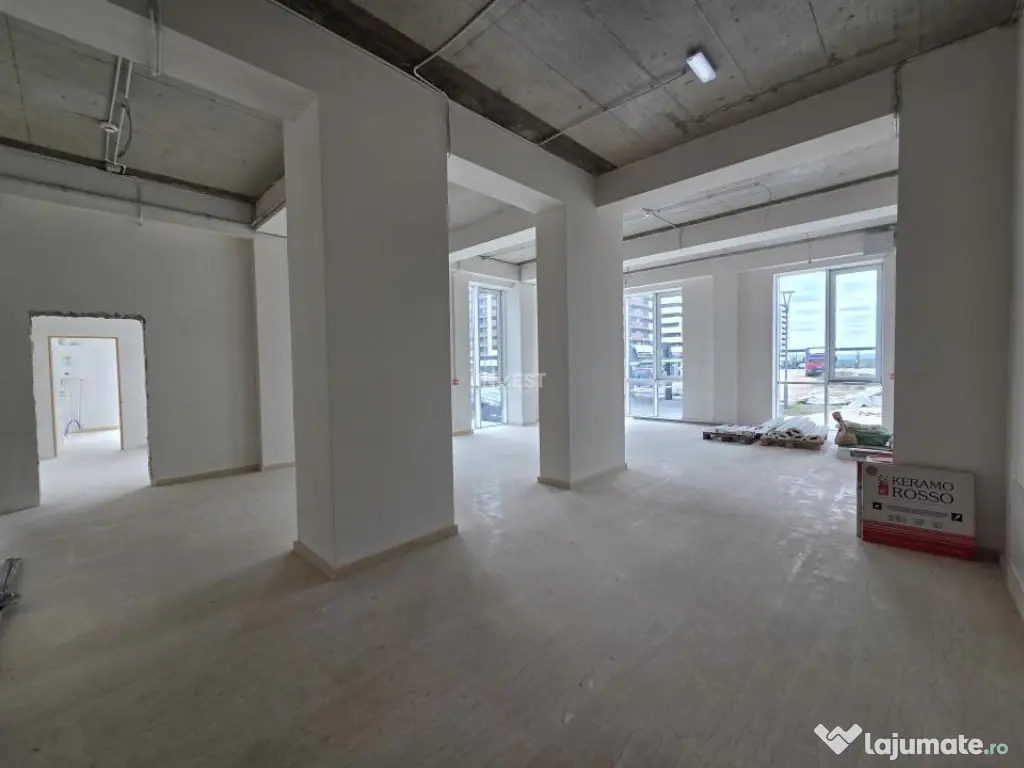 Spatiul se vinde semi finisat, acesta necesita finisarea peretilor si a tavanului impreuna cu corpurile de iluminat. Acesta dispune de doua grupuri sanitare, unde mai exista posibilitatea unui dus sau acel spatiu poate fi transformat in debara pentru a depozita lucruri.