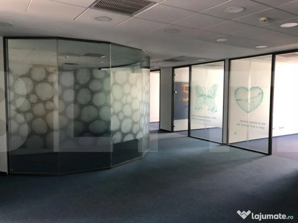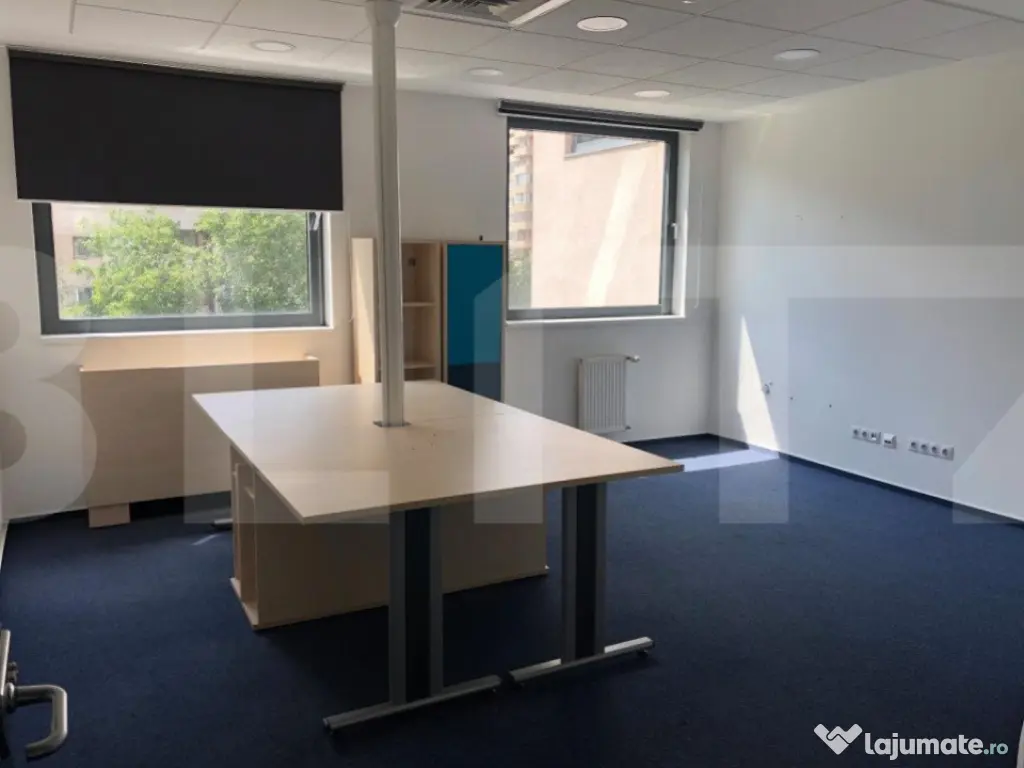 Spatiu finisat modern in cladire de birouri clasa A, format din 2 sali de conferinte si 8 birouri decomandate, dar care pot fi transformate in 4 birouri decomandate prin inlaturarea peretelui cortina. Spatiu dispune de o chicineta si 2 grupuri sanitare moderne. Cladirea ofera toata infrastructura necesara pentru activitati de tip birou , in cele mai moderne conditii. Cod ofertă / ID BLITZ: P3387 Id intern: P3387 Stadiu construcţie: Finalizat Clasă birouri: A Nr. locuri parcare: 2 Tip imobil: Bloc de apartamente