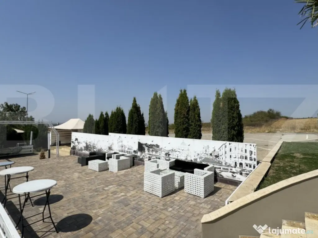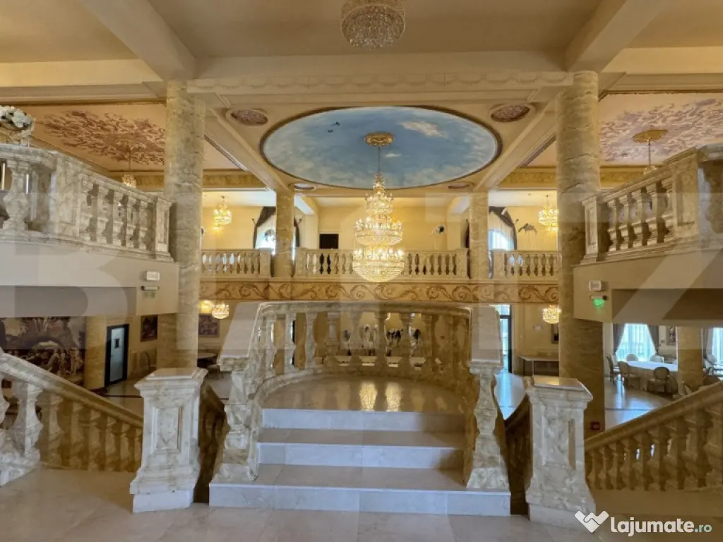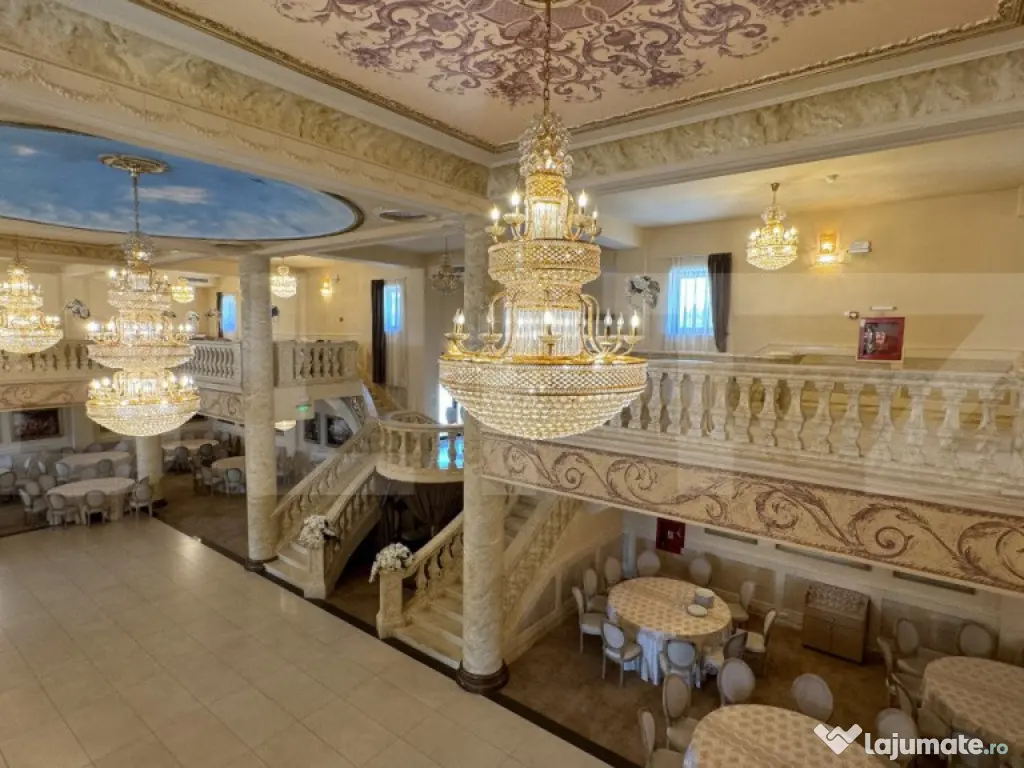 BLITZ propune spre vânzare un spațiu de evenimente compus din clădire D + P + 2E cu o suprafață utilă de 1.570 mp, situată pe un teren de 1.800 mp, în zona Panoramic - Banu Mărăcine. Proprietatea a fost construită în 2018, cu finisaje premium - marmură, travertin, pompe de căldură, încălzire în pardoseală, ventiloconvertoare, lift, ș.a. - este echipată și utilată complet pentru desfășurarea de evenimente (nunți - botezuri - aniversări), fiind în continuare activă, cu o capacitate după cum urmează: - Parter: 200 persoane - Etajul 1: 180 persoane - Etajul 2, cu pergolă: 300 persoane Compartimentarea clădirii este următoarea: - la Demisol avem holuri, lift, bucătărie caldă și rece complet utilate și funcționale, spații refrigerate și de depozitare, birou, spațiu tehnic, vestiare angajați și grupuri sanitare - la Parter se află recepția, sala principală de evenimente, cu ringul de dans, zonă de mese, grup sanitar și lift - la Etajul 1 (supantă) avem sală de mese, grupuri sanitare, cameră cu baie și două terase neacoperite - la Etajul 2 avem o terasă cu acoperiș retractabil unde se află a doua sală de evenimente, holuri, lift, două camere, grupuri sanitare Terenul de 1.800 mp este betonat și amenajat cu terasă și locuri de parcare și se accesează foarte ușor din drumul principal pe alei betonate. Proprietatea este una care vă poate aduce din primul weekend venituri, având în vedere că este funcțională și renumită în circuitul comercial, existând totodată posibilitatea convertirii acesteia în pensiune cu locuri de cazare, sală de evenimente și restaurant sau alte destinații din domeniul HoReCa. Vă aștept cu mai multe detalii și posibilități de dezvoltare afacere la vizionare. Cod ofertă / ID BLITZ: P132071 Id intern: P132071 Stadiu construcţie: Finalizat Număr încăperi: 3