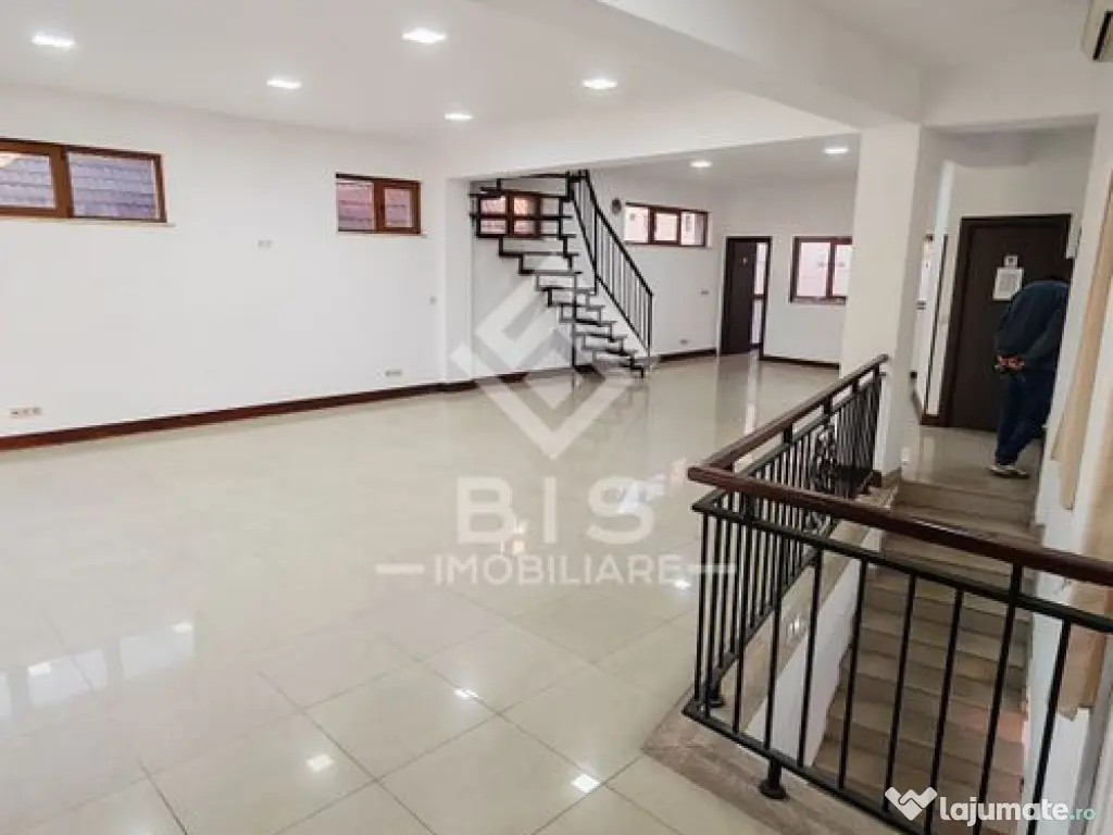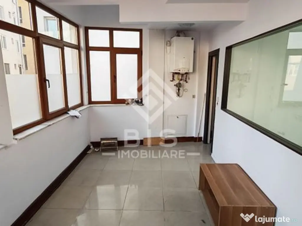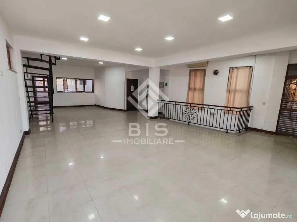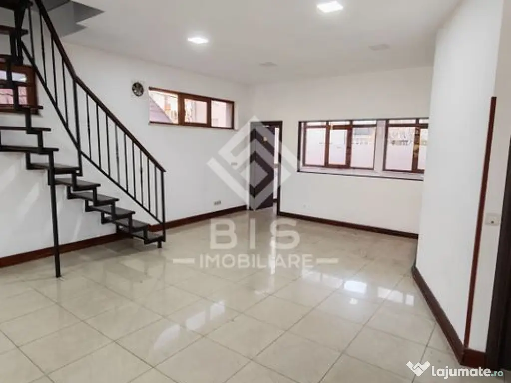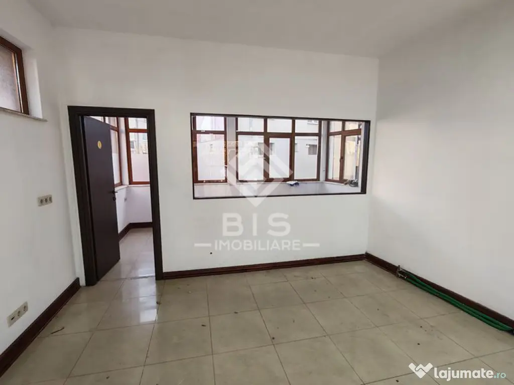 Spațiu Generos de Închiriat - 90 mp Utili - Zonă Ultra-Centrală. ​Localizare Excepțională: ​Adresă: Strada 1 Decembrie, Bistrița. ​Puncte de interes: Situat strategic lângă Spitalul Județean și Clinica Sanovil, asigurând un vad intens și o vizibilitate excelentă. ​Descriere Spațiu: ​Suprafață utilă: 90 mp ​Amplasare: Etajul 1 – Acces facil pe scara interioară. ​Configurație: Spațiu tip Open Space ( cu posibilitate de compartimentare flexibilă), ideal pentru o varietate de activități. ​Luminos și Modern: Beneficiază de ferestre mari, tip perete-cortină, care oferă o lumină naturală abundentă pe tot parcursul zilei și o priveliște plăcută. ​Dotări și Facilități Premium: ​????️ Confort Termic Superior: Sistem de încălzire în pardoseală, asigurând o temperatură uniformă și plăcută în tot spațiul. ​❄️ Climatizare Modernă: Echipamente de aer condiționat pentru reglarea optimă a temperaturii pe timpul verii. ​???? Grupuri Sanitare: Dispune de două băi funcționale, un avantaj major pentru orice tip de activitate comercială sau de birouri, asigurând un flux optim. ​Ideal pentru: ​Cabinete Medicale/Clinici Private: Proximitatea față de spitale este un avantaj major. ​Birouri/Sediu Firmă: Locația centrală asigură acces rapid și o imagine profesională. ​Saloane de Înfrumusețare/Beauty Center ​Showroom-uri/Magazine de prezentare ​Clase/Școli Private/Centre de Training ​Avantaje Cheie: ​Vizibilitate și Vad Comercial Ridicat datorită poziționării centrale. ​Nu ratați șansa de a vă dezvolta afacerea într-una dintre cele mai bune locații din oraș! Suprafaţă totală: 90 m² An finalizare construcție: 2005 Stadiu construcţie: Finalizat Clasă birouri: B Număr Grupuri Sanitare: 2 Posibilitate parcare: Nu Tip imobil: Clădire de birouri