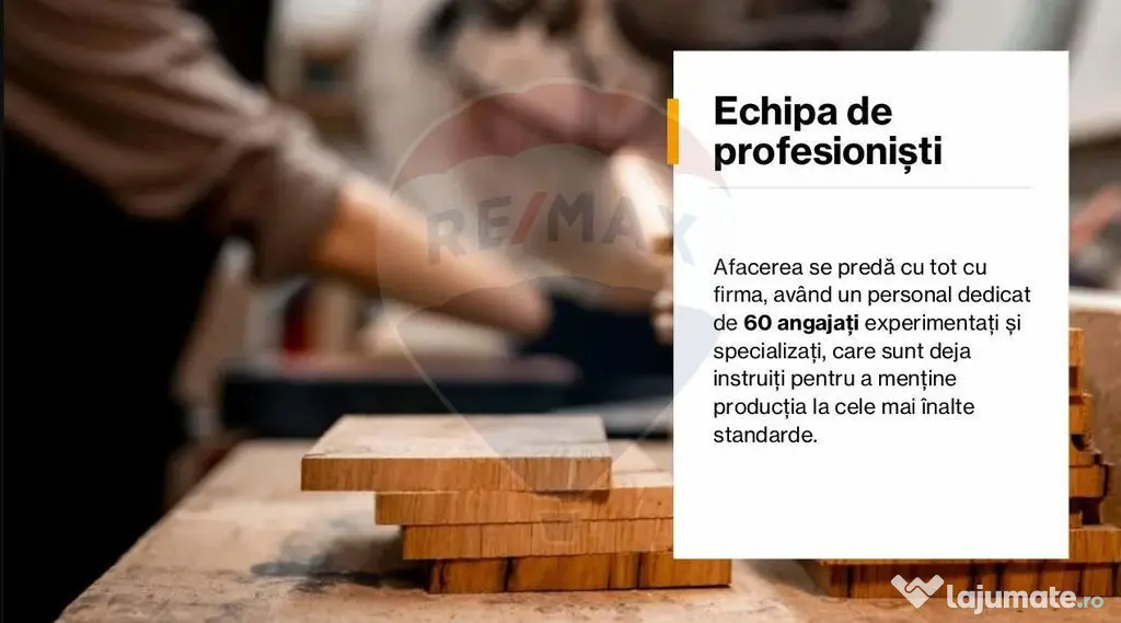 Capacitate de producție: Cu o echipă de 60 angajați calificați, afacerea beneficiază de o putere mare de producție datorită utilajelor moderne și a infrastructurii bine puse la punct.
