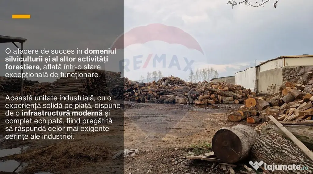Dacă sunteți în căutarea unei investiții sigure și rentabile în domeniul silviculturii și al activităților forestiere, această unitate reprezintă oportunitatea perfectă. Nu ratați șansa de a prelua o afacere bine consolidată și în plină expansiune o afacere deja funcțională, cu un potențial mare de dezvoltare și profit! Contactați-ne pentru mai multe detalii 0758226533