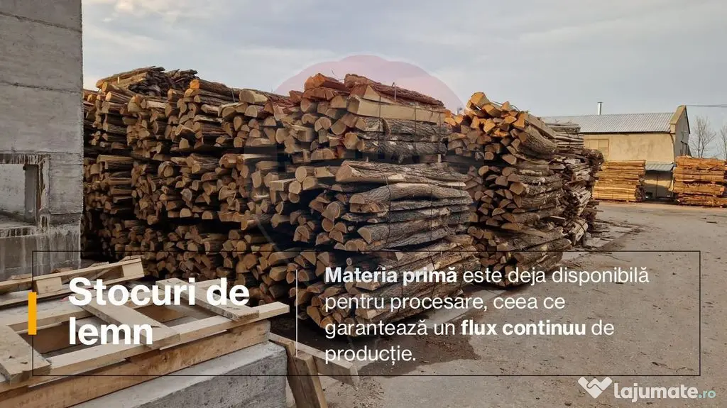 Locație: Situată pe un teren vast de 40.000 mp, dintre care 30.000 mp sunt betonati, iar 200mp deschidere la drum, facilitând accesul ușor la transportul de materii prime și produse finite.