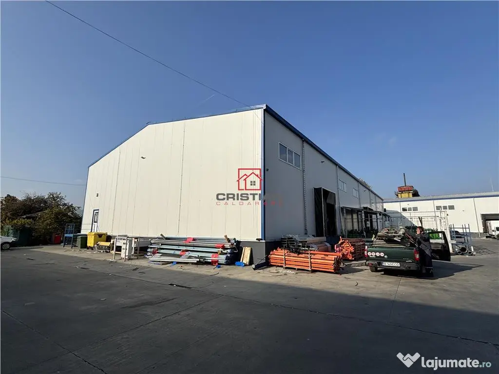 Inchiriere spatiu industrial/depozit/hala Theodor Pallady - Drumul Intre Tarlale - Oxigenului, Bucuresti. Imobilul are suprafata totala 960mp(depozit - 920mp, birouri - 40mp), inaltime - 8ml, acces prin 2 usi tip rampa tir. Spatiu industrial este construit din structura metalica si inchideri din panouri sandwich, beneficiaza de autorizatie ISU clasa C, instalatie de hidranti interiori/exteriori, trape de fum. Spatiul dispune de facilitati: apa, canalizare, gaze, curent electric 220-380kw, 50kwa. Spatiul se preteaza pentru activitati de productie, depozitare. Imobilul este disponibil imediat. Pret - 5.800euro tva/luna( mentenanta 0.50euro/mp TVA) COMISION 50-100% din prima luna de chirie Suprafaţă totală: 960 m² Suprafaţă birouri: 960 m² An finalizare construcție: 2018 Stadiu construcţie: Finalizat Înălţime spaţiu: 3 m Număr încăperi: 2 Număr Grupuri Sanitare: 2 Tip imobil: Producţie/Servicii