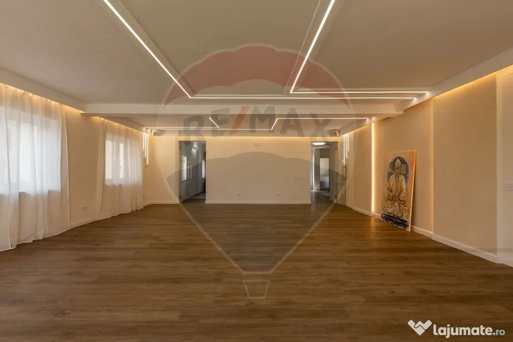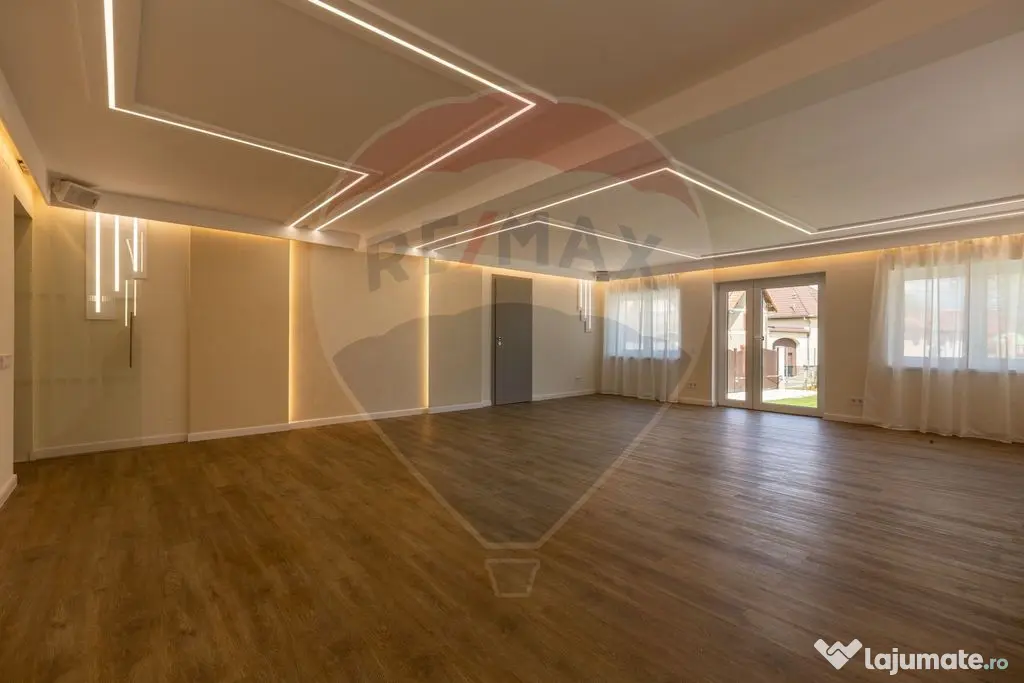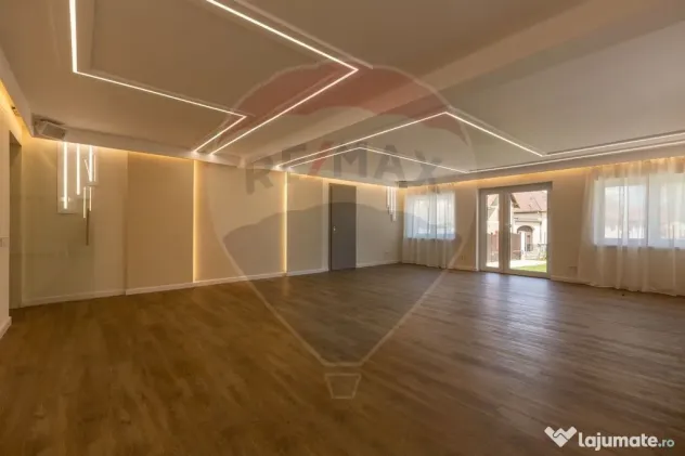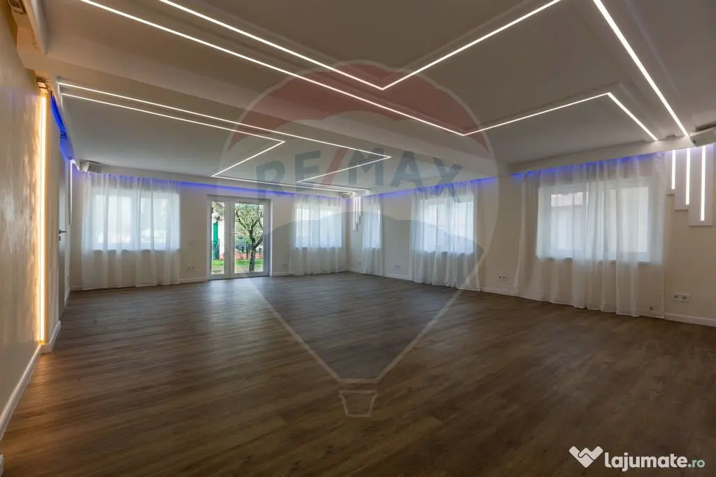 Parter amenajat modern | Sală mare și luminoasă | Recepție elegantă | Grădină amenajată | Vestiare și grupuri sanitare