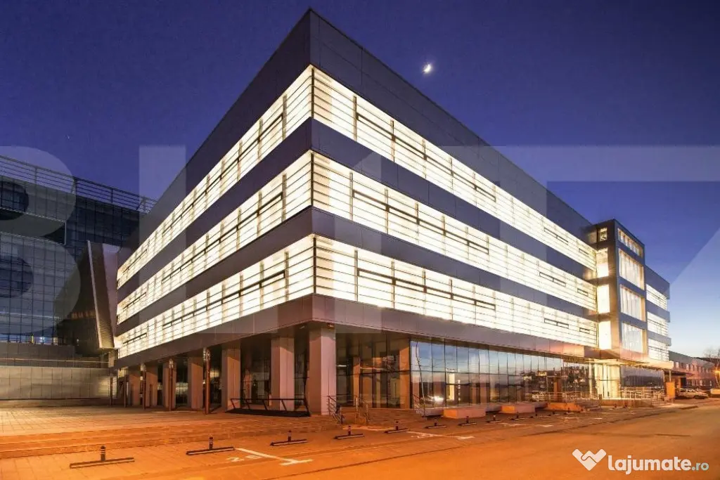 Cladire de birouri clasa A+ va ofera o suprafata de 1500 de mp, situati la etajul 1 al cladirii, sub forma de open space cu multiple accese ( 3 lifturi) si cu inaltime de 2.75. Exista un numar total de 313 locuri de parcare aferente cladirii si parcare pentru biciclete. Cladirea are 2 scari exterioare si o terasa verde la etajul 3.