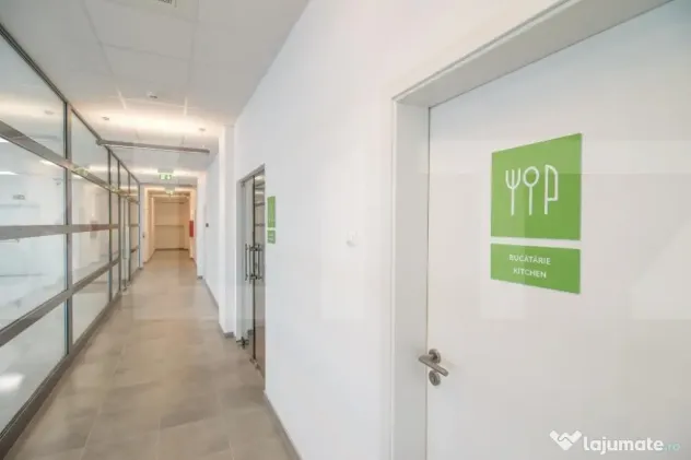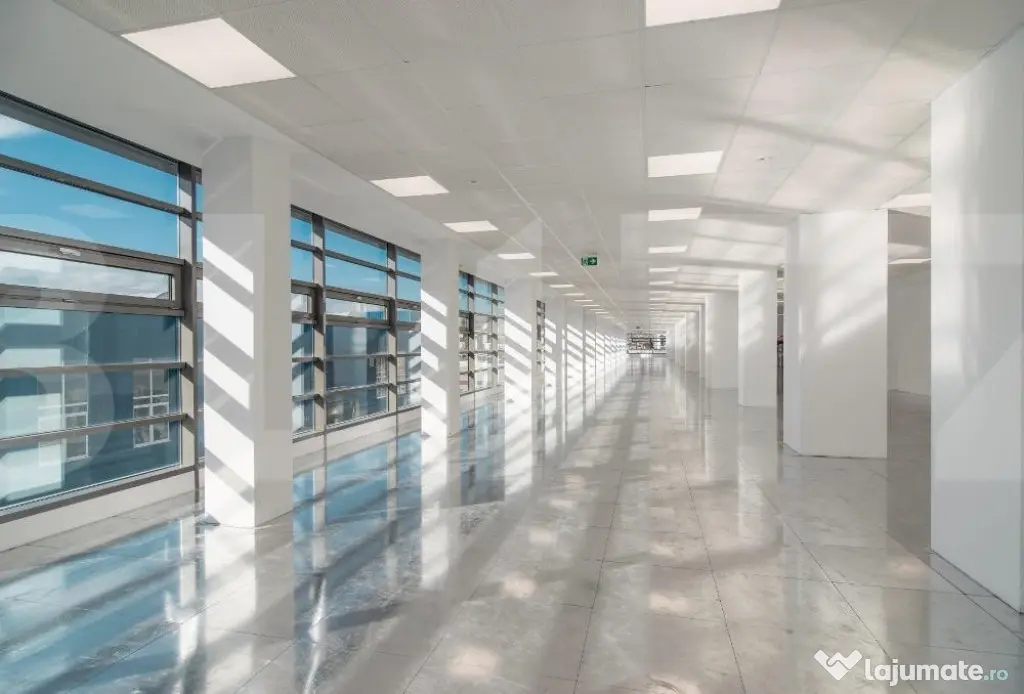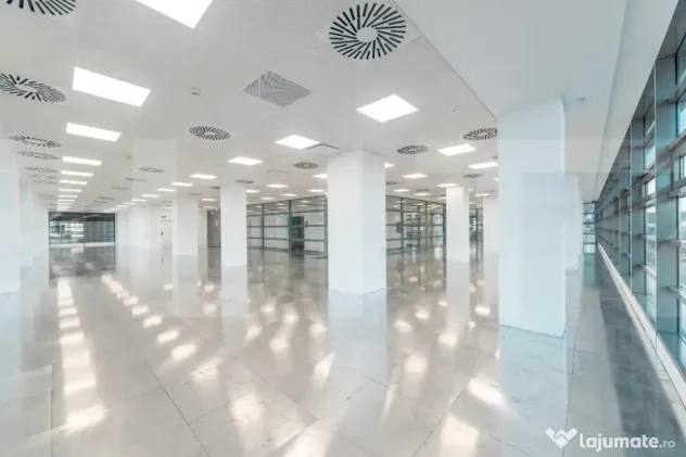 Spatiul se preda cu podea tehnologica, doar pe spatiile de lucru , punct de incarcare admisa : >2.0kN la max. 2 mm indoire, sarcina utila admisa: 3.0 kN/m2 evaluare la foc: B1, Q1, nivel zgomot 25 Db, h = 11.5-12 cm , adaposteste curenti slabi, tari si fibra optica + cablu UTP, mocheta si tavan fals cu sistem de iluminat.