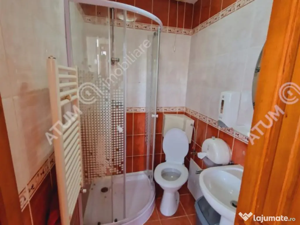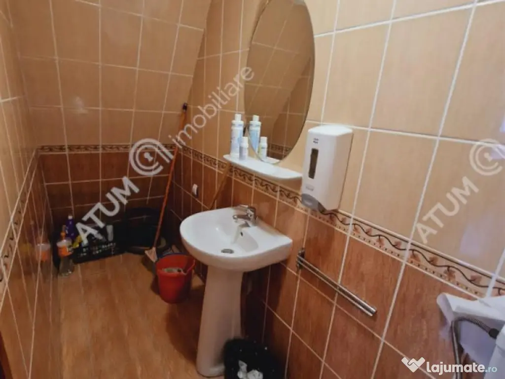 Spatiu pentru birouri de inchiriat, amplasat in Centrul Istoric al orasului Sibiu, cu orientare Sud-Estica. Pozitionarea in zona istorica ofera vizibilitate stradala si acces rapid catre principalele puncte de interes, fiind potrivit pentru sediul unei companii, activitati de birou sau alte servicii administrative. Imobilul a fost edificat in anul 1795 si renovat in anul 2020, beneficiind de toate imbunatatirile si dotarile necesare activitatii de birouri (incalzire in pardoseala, calorifere din otel si instalatii din cupru, aer conditionat, sistem de alarma, supraveghere video, camera server etc). Spatiul disponibil pentru inchiriere este situat exclusiv la etajul 1 si are o suprafata utila de 173 mp, fiind compartimentat in 4 birouri individuale, 2 grupuri sanitare, un balcon cu suprafata de 5 mp si un hol generos de aproximativ 60 mp, ce poate fi amenajat in functie de necesitatile chiriasului. Valoarea de inchiriere a spatiului este de 800 euro garantie la incheierea contractului. ID intern: 3466 Suprafaţă totală: 213 m² An finalizare construcție: 1795 Stadiu construcţie: Finalizat Clasă birouri: A Înălţime spaţiu: 3 m Număr încăperi: 5 Număr Grupuri Sanitare: 2 Tip imobil: Bloc de apartamente