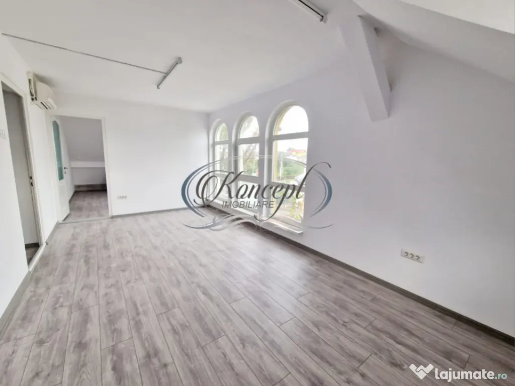 Koncept Imobiliare va propune spre inchiriere un spatiu de birouri situat in cartierul Marasti, in apropiere de Leroy Merlin, intr-o cladire administrativa, la mansarda. Locatia ofera acces facil atat pietonal, cat si auto, fiind deservita de multiple cai de transport si beneficiind de o pozitionare excelenta pentru activitati de business. Imobilul dispune de 150 mp utili, compartimentati in 8 incaperi, cu un grup sanitar si 5 locuri de parcare incluse, existand posibilitatea de a obtine locuri suplimentare. Compartimentarea este fixa, fara optiuni de recompartimentare, dar spatiul este eficient organizat pentru fluxuri de lucru. Exista si optiunea de a inchiria impreuna o hala adiacenta de 100 mp, ceea ce extinde potentialul de utilizare. Finisajele sunt moderne, iluminatul interior este asigurat prin sistem LED, iar incalzirea se face prin centrala termica, garantand un confort optim. Lumina naturala este prezenta intr-un aport moderat, iar designul mansardei creeaza un cadru functional si placut pentru activitati de birou. Spatiul este recomandat pentru firme de contabilitate, proiectare, arhitectura, call center sau logistica, datorita compartimentarii si avantajelor oferite de pozitionare. Este o alegere potrivita pentru businessuri care cauta un mediu profesional intr-o locatie accesibila. Spatiul este disponibil imediat, iar prima inchiriere aduce un plus de valoare prin utilizarea sa exclusiva. Pentru informatii complete, programarea unei vizionari sau pentru a afla oferta noastra completa va stam la dispozitie telefonic, prin e-mail sau la sediul agentiei noastre, pe str. Aviator Badescu, nr. 19, Cluj-Napoca. Id intern: P20837 Suprafaţă totală: 170 m² An finalizare construcție: 2010 Stadiu construcţie: Finalizat Nr. locuri parcare: 5 Tip imobil: Clădire de birouri