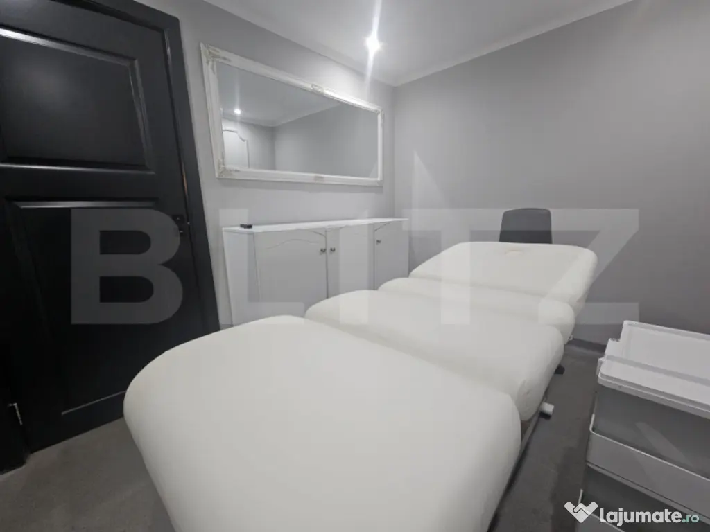 Blitz vă prezintă pentru închiriere un spațiu comercial cu o suprafață de 130 mp, compartimentat în 5 încăperi, ideal pentru desfășurarea unei game variate de activități. Spațiul a funcționat anterior ca salon, oferind posibilitatea unei afaceri la cheie, însă fiind încadrat ca SAD, este pretabil pentru multiple domenii de activitate. Datorită compartimentării și suprafeței generoase, acesta este versatil și poate fi amenajat după bunul plac, în funcție de necesități. Se predă în starea actuală sau, la cerere, poate fi debarasat, oferind flexibilitate în amenajare. Locația este situată la aproximativ 12 minute cu mașina de centrul orașului și beneficiază de acces facil la mijloace de transport în comun. Dacă doriți să vă mutați sau să începeți afacerea dumneavoastră într-o zonă liniștită, bine conectată, vă așteptăm la o vizionare! Cod ofertă / ID BLITZ: P167332 Id intern: P167332 Stadiu construcţie: Finalizat Nr. locuri parcare: 3 Tip imobil: Bloc de apartamente