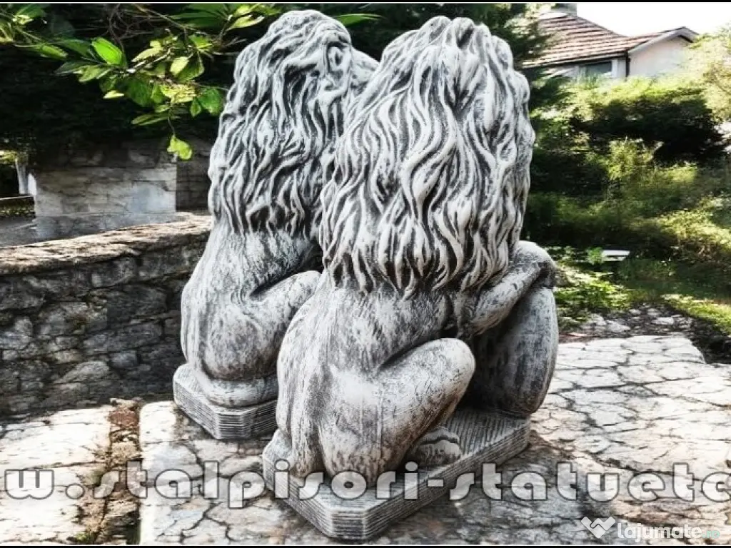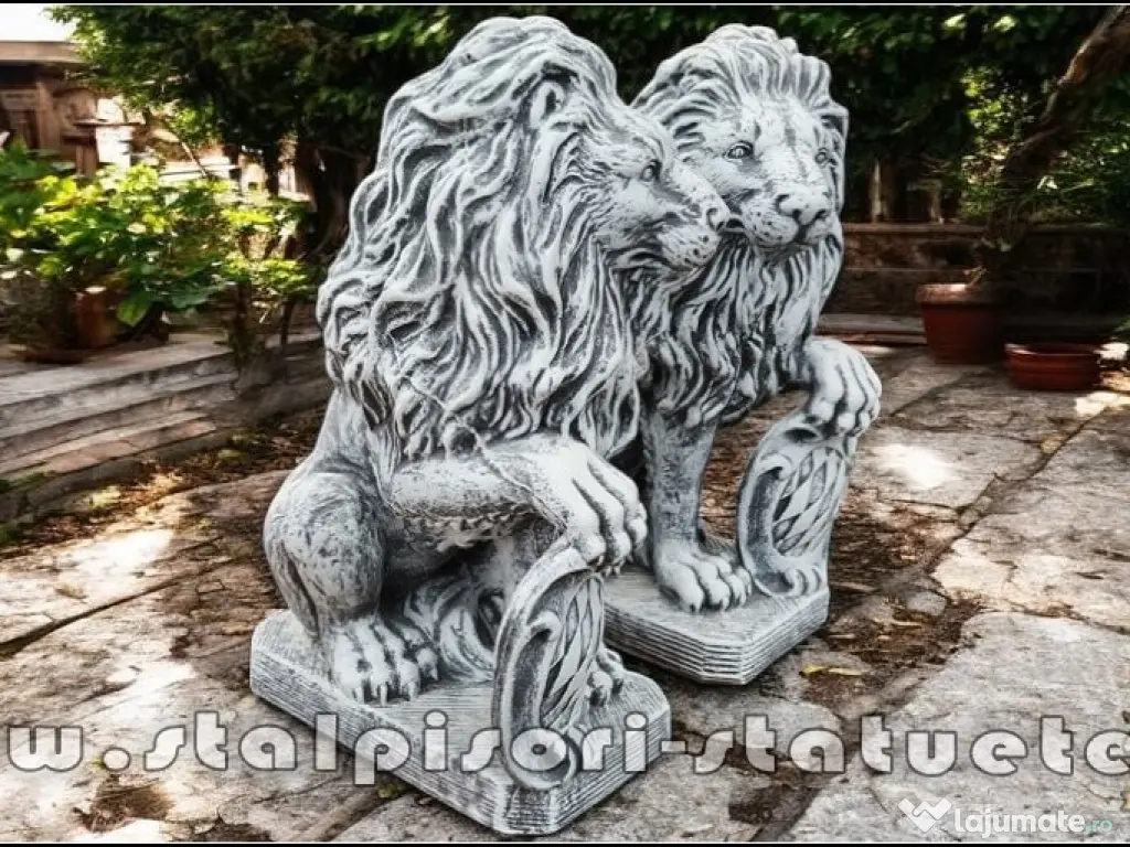 – DETALii TEHNiCE PRODUS: – Preţ: 800,00 lei (set 2 bucăţi, privire stânga-dreapta.) Înălțime: 55 cm. Diametru bază: 19×32 cm. Greutate: 80 kg. (set 2 bucăți.) Material: Beton aditivat, ciment 52,5 R, agregate concasate.
