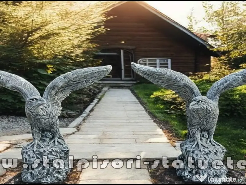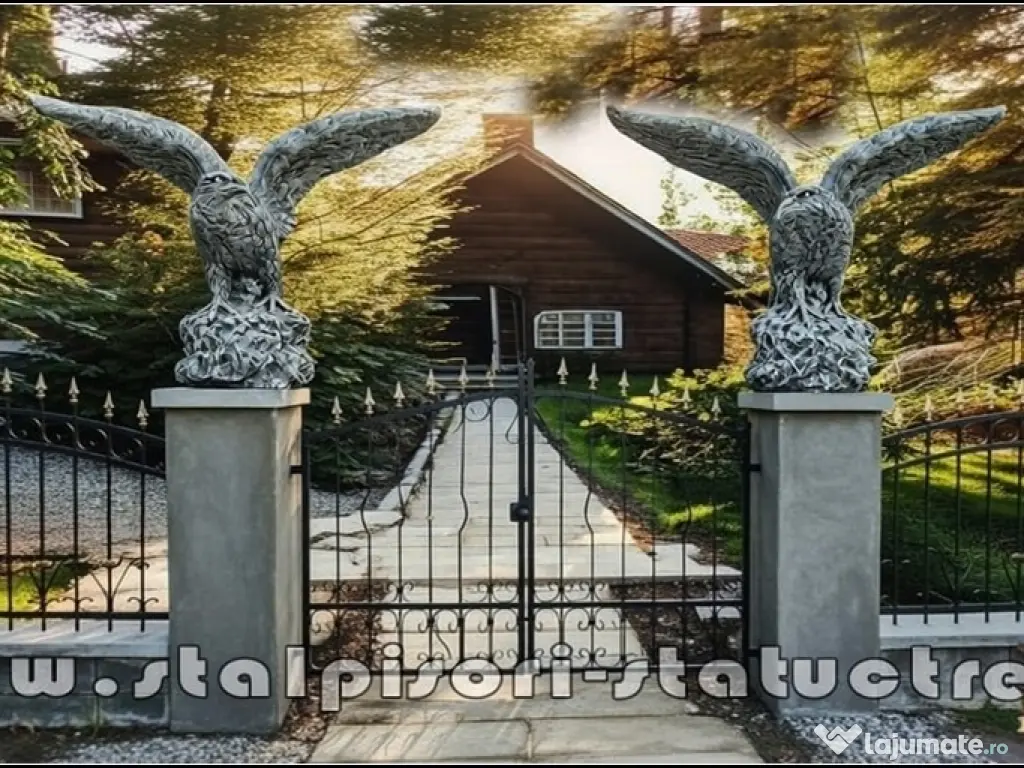 – DETALii TEHNiCE Și iNFORMATiVE PRODUS: – Preţ: 2.400 lei (set 2 bucăţi privire stânga, dreapta.) Înălțime: 95 cm. Lățime aripi: 115×73 cm. Diametru bază: 52×40 cm. Greutate: 360 kg. (set 2 bucăți.) Material: beton aditivat cu agregate concasate. Disponibilitate: din stoc și la comandă. Culori disponibile: alb marmorat, arămiu antichizat, auriu antichizat, galben antichizat, gri antichizat. Livrarea la domiciliu se adaugă tarif curier și cost paletizare. Plata se face în totalitate la sediul firmei, sau în baza unei facturi proforme cu ordin de plată prin virament bancar sau prin aplicaţie de pe telefon. Nu se acceptă plata ramburs ! Contact: stâlpișori și statuete vodafone 0721 695 473 google: www.stalpisori-statuete.ro
