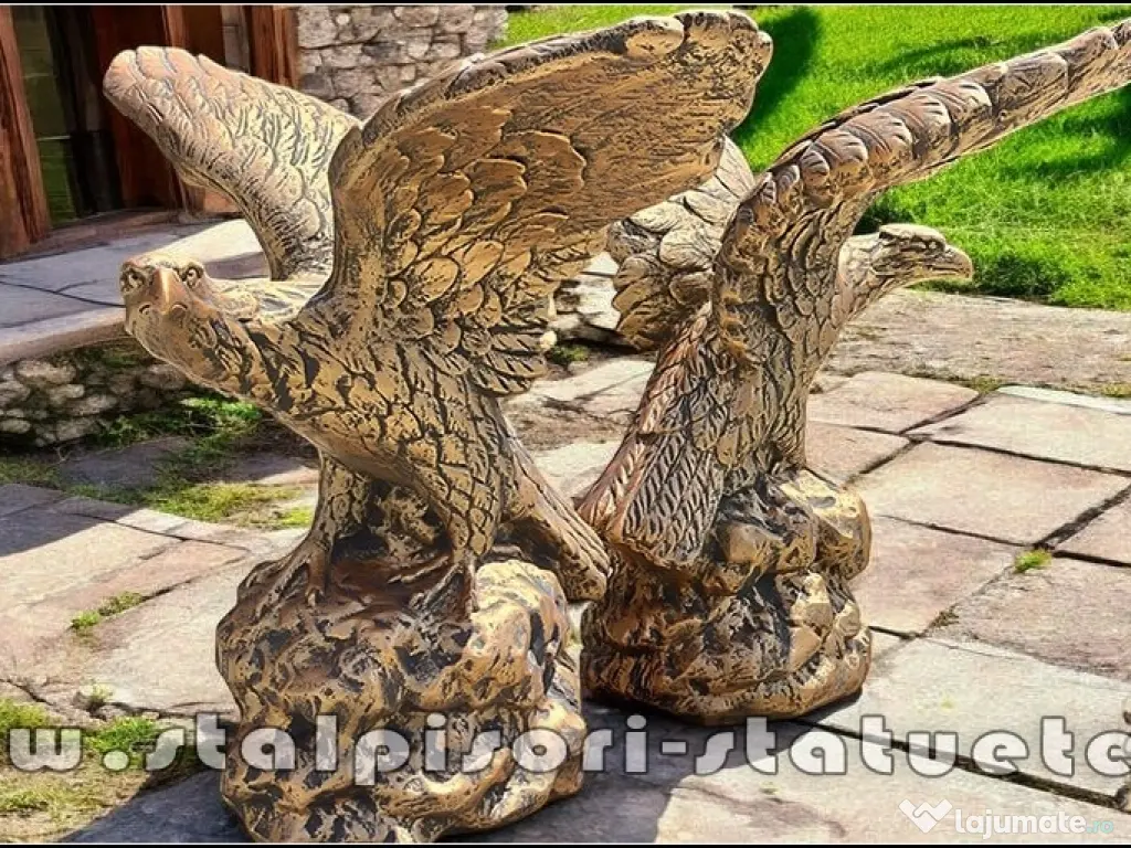 – DETALii TEHNiCE PRODUS: – Preţ: 2.400 lei (set 2 bucăţi privire stânga, dreapta.) Înălțime: 95 cm. Lățime aripi: 115×73 cm. Diametru bază: 52×40 cm. Greutate: 360 kg. (set 2 bucăți.) Material: beton aditivat cu agregate concasate. Disponibilitate: din stoc și la comandă. Culori disponibile: alb marmorat, arămiu antichizat, auriu antichizat, galben antichizat, gri antichizat. Pentru livrare în ţară la domiciliu prin curier, se trimit colete doar la o valoare de minim 1.000 lei, fără tariful curierului. Livrarea la domiciliu se adaugă tarif curier și cost paletizare. Plata se face în totalitate la sediul firmei, sau în baza unei facturi proforme cu ordin de plată prin virament bancar sau prin aplicaţie de pe telefon. Nu se acceptă plata ramburs ! Contact: stâlpișori și statuete vodafone 0721 695 473