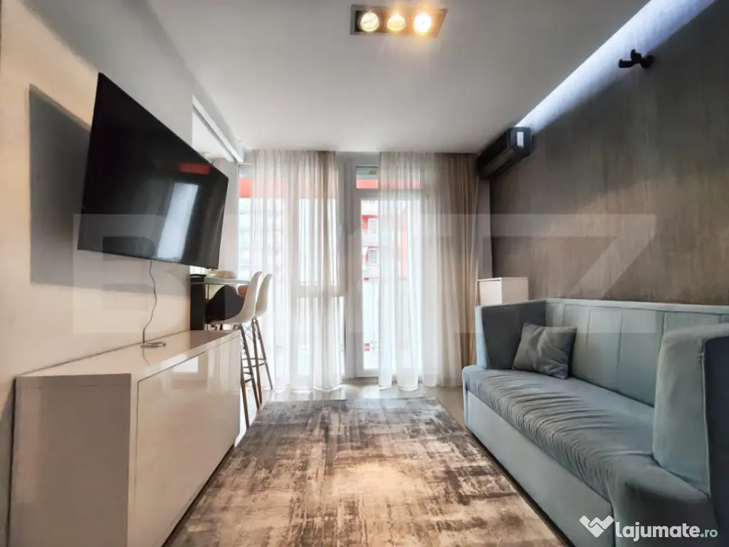 Blitz ofera spre inchiriere un studio modern in complexul rezidential Ared, amplasat la etajul 3 al unui bloc prevazut cu lift. Locuinta dispune de balcon de 8 mp, un spatiu potrivit pentru relaxare sau pentru amenajarea unei zone exterioare cochete. Apartamentul este complet echipat si pregatit pentru mutare imediata. Bucataria include plita electrica, cuptor electric si masina de spalat vase, iar in locuinta se regaseste si masina de spalat haine. Incalzirea pe gaz asigura confort termic si cheltuieli lunare reduse. Zona este foarte bine pozitionata, cu supermarketurile Lidl si Penny la cativa pasi, oferind acces rapid la cumparaturi si facilitati zilnice. Ideal pentru o persoana sau un cuplu care isi doreste un apartament modern, eficient si bine amplasat. Cod ofertă / ID BLITZ: P165091 Id intern: P165091 Confort: 1 Tip imobil: Bloc de apartamente Număr Băi: 1