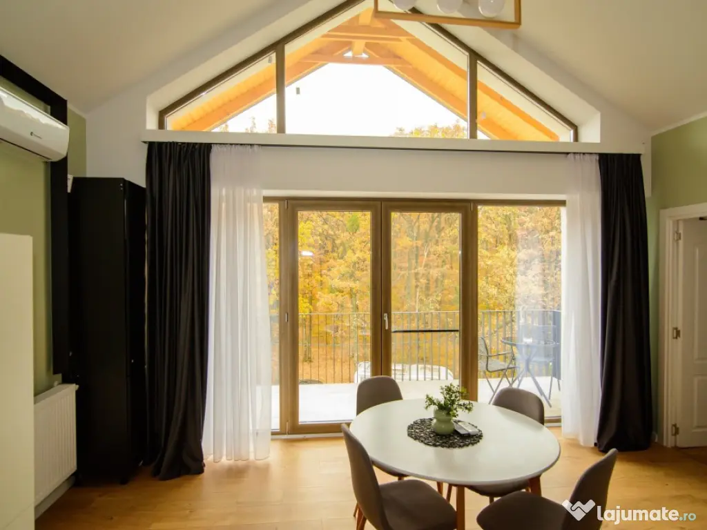 forestboutique*ro Apartament 1 camera, confort 1, decomandat, situat la marginea padurii in zona Gavana Platou.  Unitate hoteliera acreditata de ministerul turismului ofera cazare pe termen mediu si lung in apartamente noi recent construite cu 2 si 3 camere. Apartamentul este complet nou și dotat cu toate cele necesare pentru a vă face viața mai ușoară și confortabilă. Veți fi plăcut surprinși să descoperiți că toate electrocasnicele și mobilierul sunt noi și de înaltă calitate, iar designul interior a fost conceput cu grijă pentru a crea un mediu primitor și relaxant. In Vila sunt disponibile 13 unitati, din care va puteti alege pe cel care va reprezinta. Această vilă este o oportunitate unică de a trăi într-un cămin nou, confortabil și cu o priveliște minunată la pădure. Nu ratați șansa de a vă face această vilă nouă casa dumneavoastră! Pretul afisat nu include menaj & utilitati. Oferim FACTURA fiscala cu TVA Confort: 1 Tip imobil: Casă/Vilă Număr Băi: 1 Posibilitate parcare: Da Nr. locuri parcare: 1