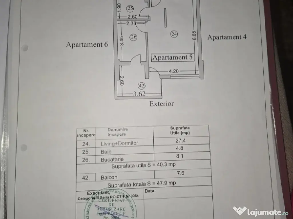 47,90 mp, dintre care utili 40,30 si cu balcon de 7,60 mp,situat în Queen's bye see resident pe STR.D10 ,nr 11, la 200 m de Lidl si 100m de plaja cu acces la piscina.