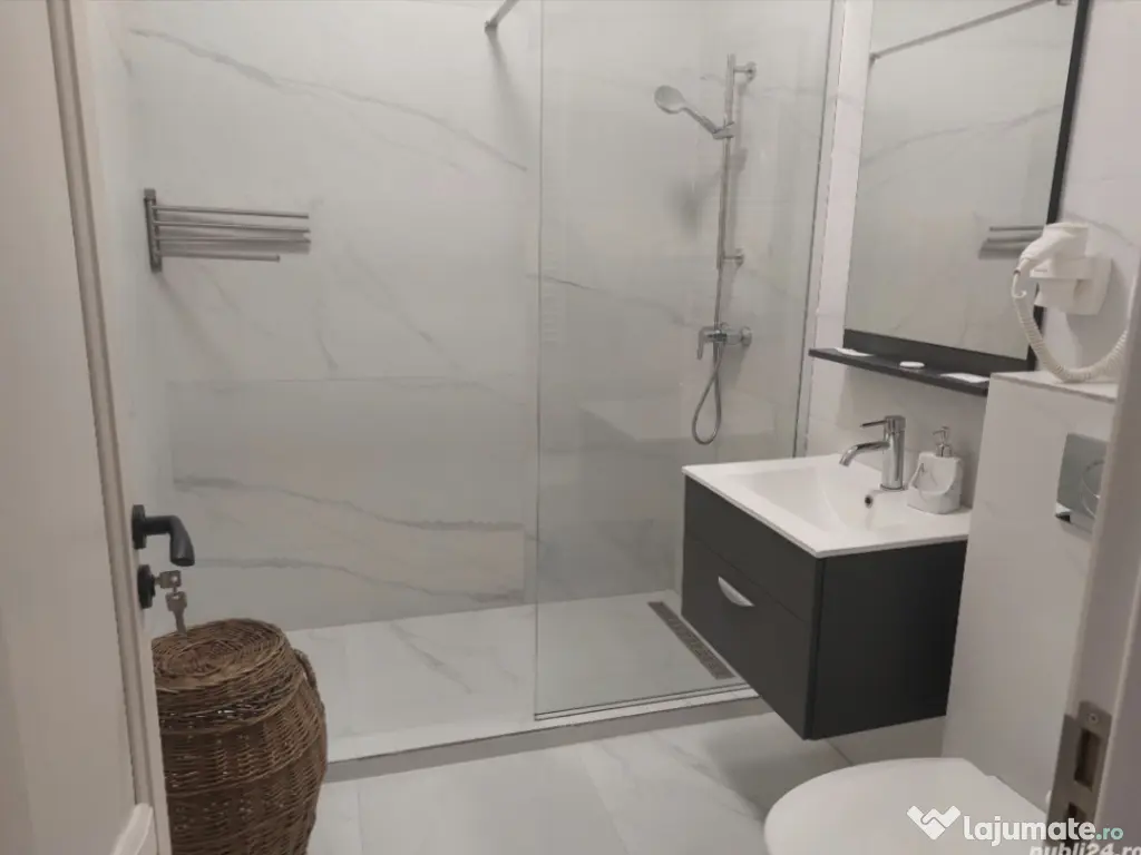 Studio compus din terasă,living cu dormitor open space,dotat cu tot ce trebui,bucătărie separată amenajata cu tot ce e necesar .Mai dispune de un TV Smart,wi-fi,masina de spalat,aspirator,fier de călcat,aparat de cafea,aer condiționat.