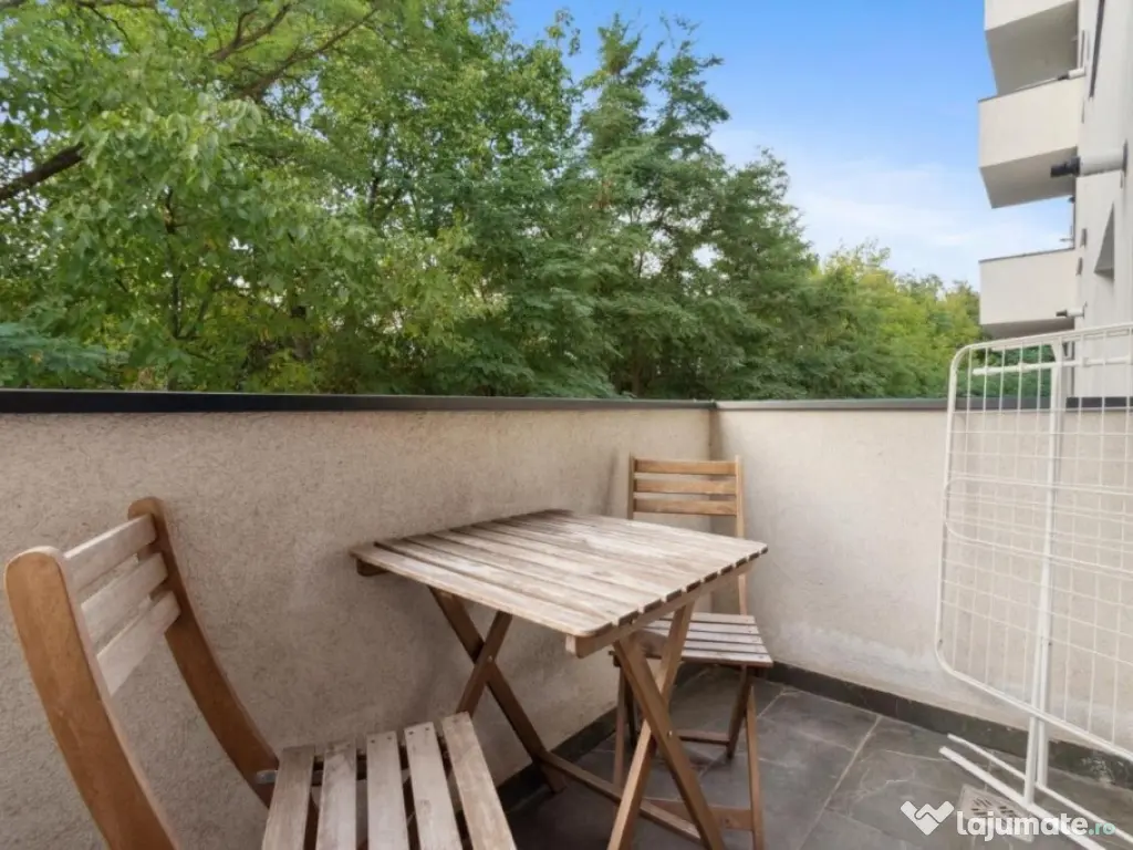 Pretul de 750€ este cu utilitati incluse. Se poate inchiria si cu plata separata a utilitatilor la pretul de 600€ Se inchiriaza studio nou, mobilat si utilat complet langa restaurantul 2 Cocosi: Finisaje si mobila de calitate superioara. LUX Masina de spalat, uscator par, frigider, cuptor cu microunde, cuptor si plita incorporabile etc. *statia de metrou se afla la aproximativ 200m; *loc parcare subteran; *zona este linistita, poti admira lacul Straulesti; *Baneasa Shopping City se afla la doar 5 minute; Confort: 1 Tip imobil: Bloc de apartamente