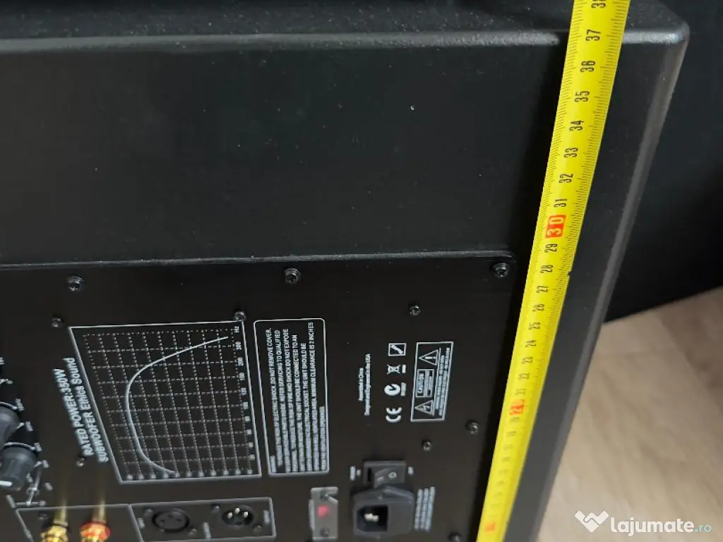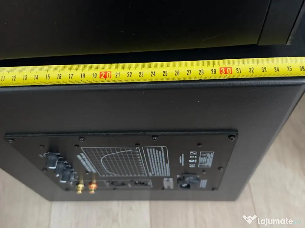 Este un sub greu, masiv (peste 25 kg), comparabil ca volum cu subwoofere mult mai scumpe din zona high-end.