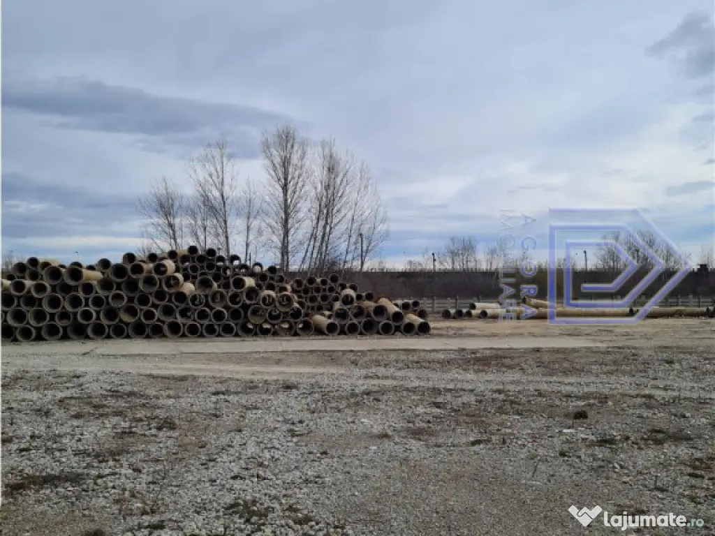 Se ofera la inchiriere 20000 mp de teren , partial betonat si imprejmuit cu gard din plasa de sarma. Utilitati: curent 380 V, apa, canalizare. Se poate inchiria si partial.