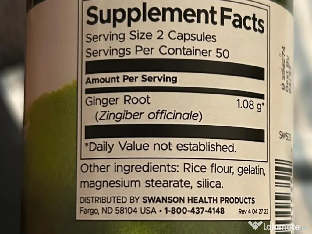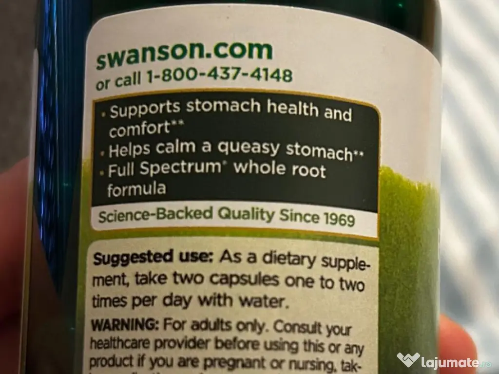 Swanson, Full Spectrum Ginger Root 540 mg / Extract de Radacina de Ghimbir 540 mg pentru sanatatea digestiei, si calmarea stomacului